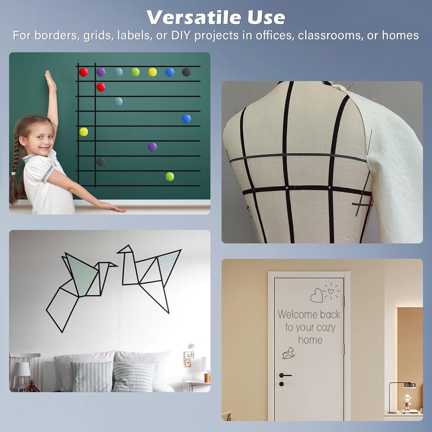 - 【 High-Adhesion & No-Residue Formula 】: thin black whiteboard tape is strong yet gentle adhesive sticks firmly to magnetic whiteboards, glass boards, and dry-erase surfaces. Leaves no marks when removed.These skinny black tapes for whiteboard stick well without damaging whiteboard, making them perfect for temporary or permanent setups
