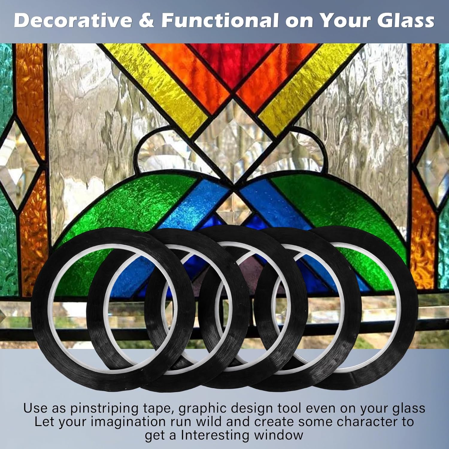 5PCS Whiteboard Tape Black Pinstripe Tape Stained Glass Paint Lead Line for DIY Glass Painting Surface Gallery Window 3mm Width 131FT Long