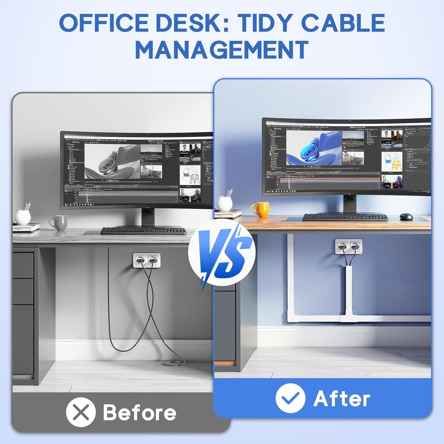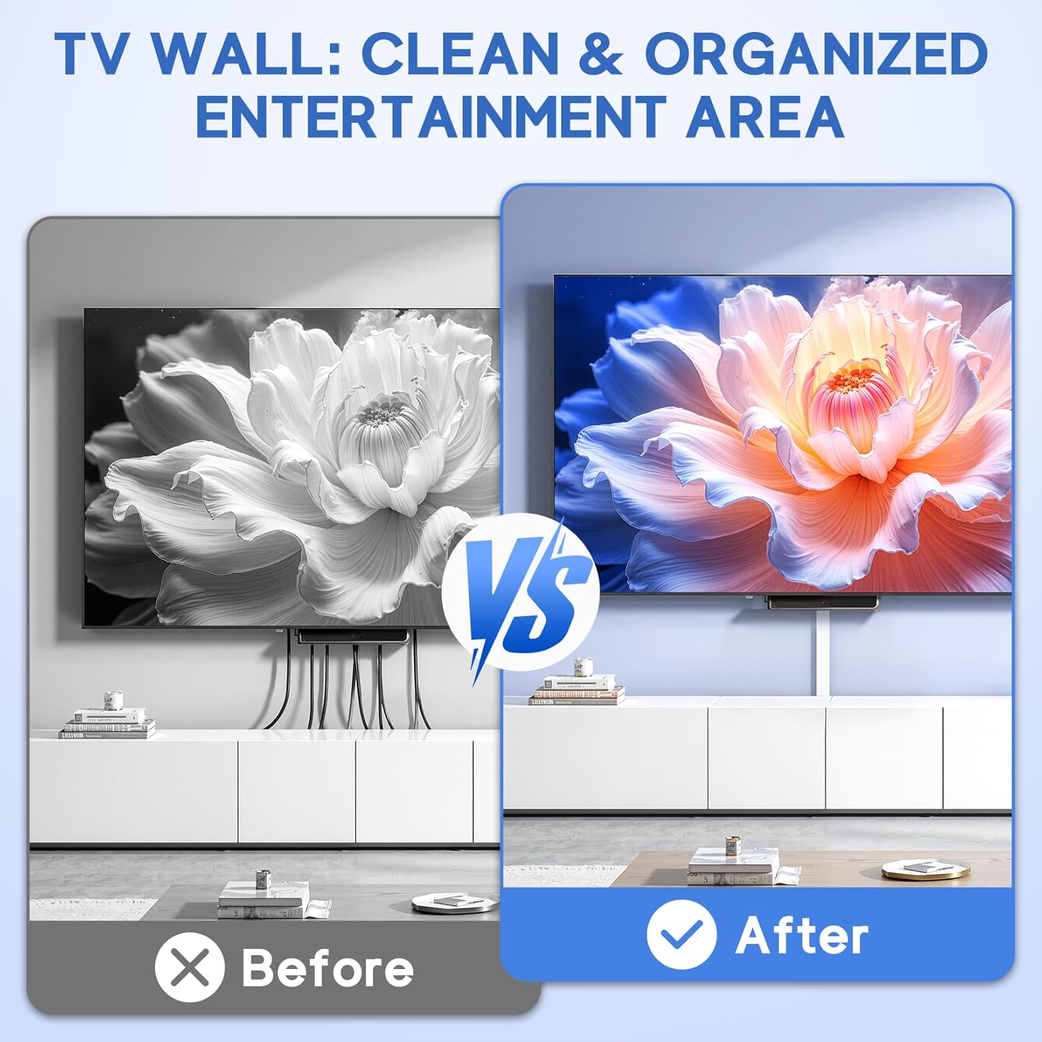 - Easy Installation: No screws or drilling required—just peel and stick. The strong adhesive backing makes setup quick and hassle-free, keeping your wires organized in minutes. (Note: not recommended for textured walls.)