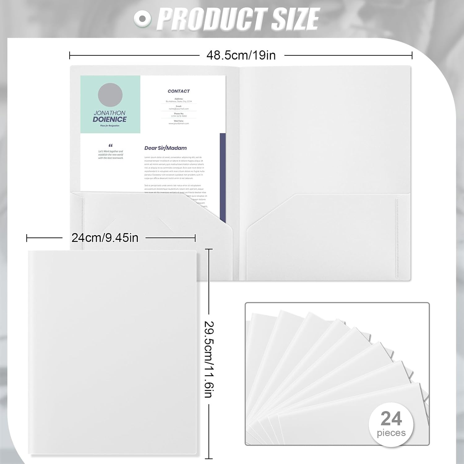 - Enough Quantity to Use and Replace: you will receive 24 pieces white plastic folders, each is designed with 2 pockets, fitting 8.5 x 11 inch letter size paper; Each pocket can stack 50 pages of letter size paper easily and neatly