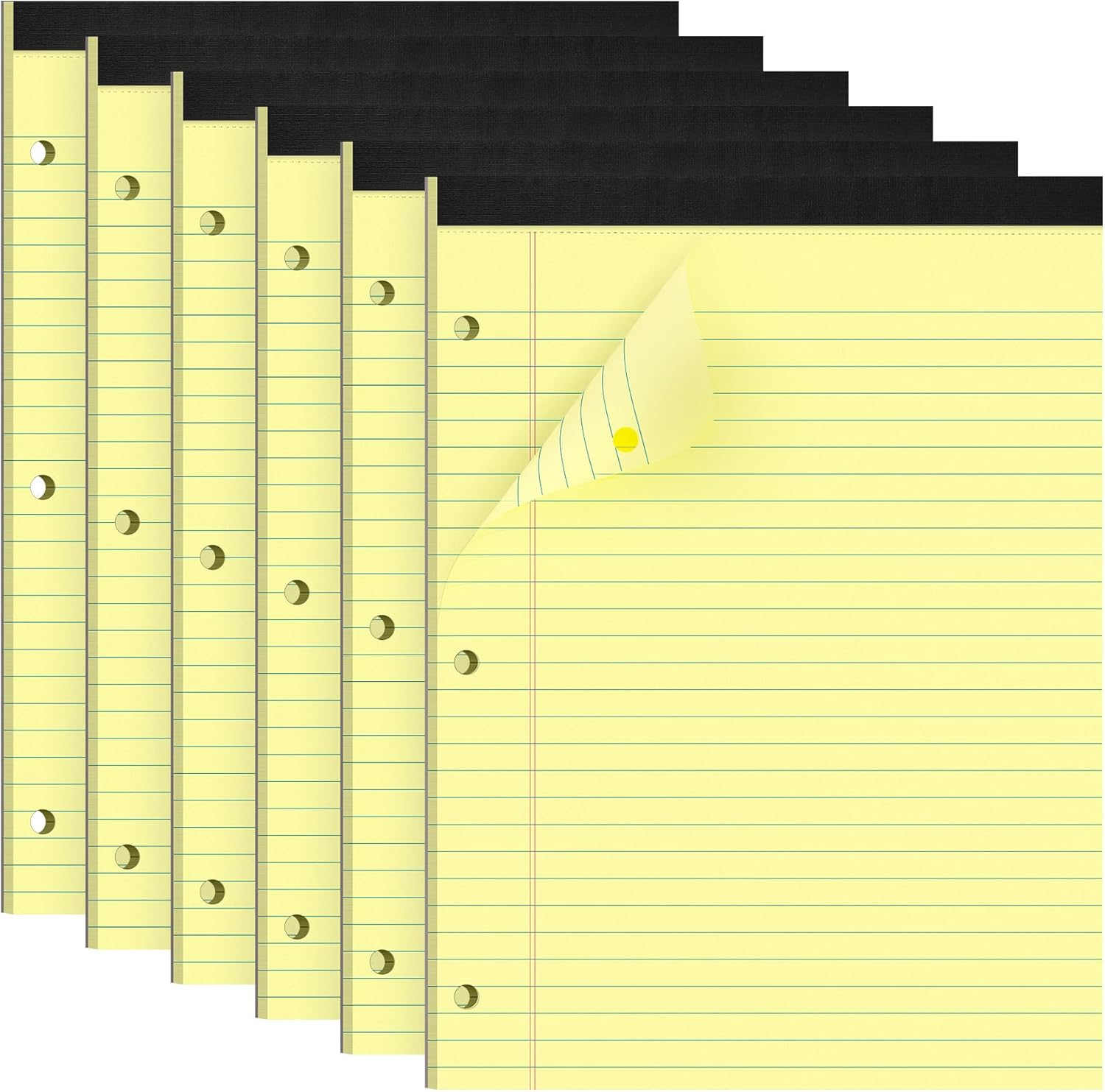 HAUTOCO 8.5 x 11 Legal Pads 6 Pack Yellow Wide Ruled Lined Writing Note Pads Perforated Notepad, 30 Sheets Per Notepad, 3-Hole Punched Paper for School, Office