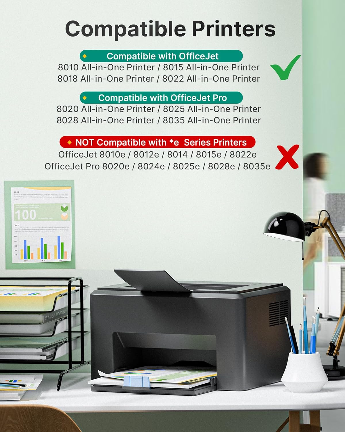 - Compatible printers: These 910xl cartridges compatible printers: OfficeJet 8010, 8012, 8018, 8022, OfficeJet Pro 8020, 8021, 8022, 8023, 8024, 8025, 8026, 8028, 8035 Models