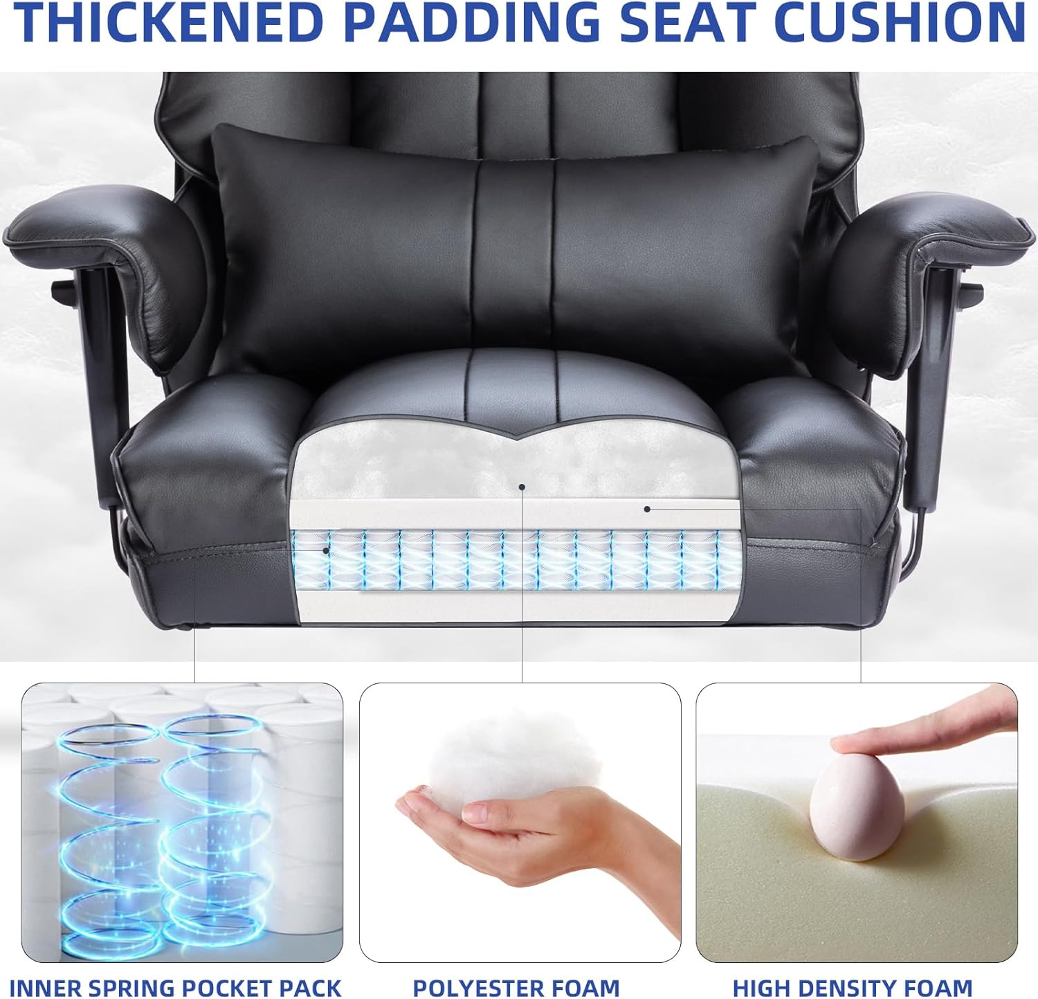 - ๐ช๐๐๐๐๐๐๐๐๐๐: Big and tall office chair features scratch-resistant PU leather. Task chair is easy to maintain. Big high back office chair filled with double-layer polyester foam and sponge seat and backrest provide unmatched comfort for all-day sitting.