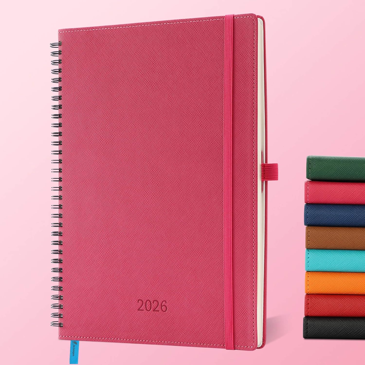 IN-LUXPRO Planner 2026 Daily Weekly and Monthly,11.5"x8.5",12 Months Spiral Bound Calendar Agenda with Self-adhesive Pen Holder,2026 Appointment Book with Vegan Leather Soft Cover,Rose Red