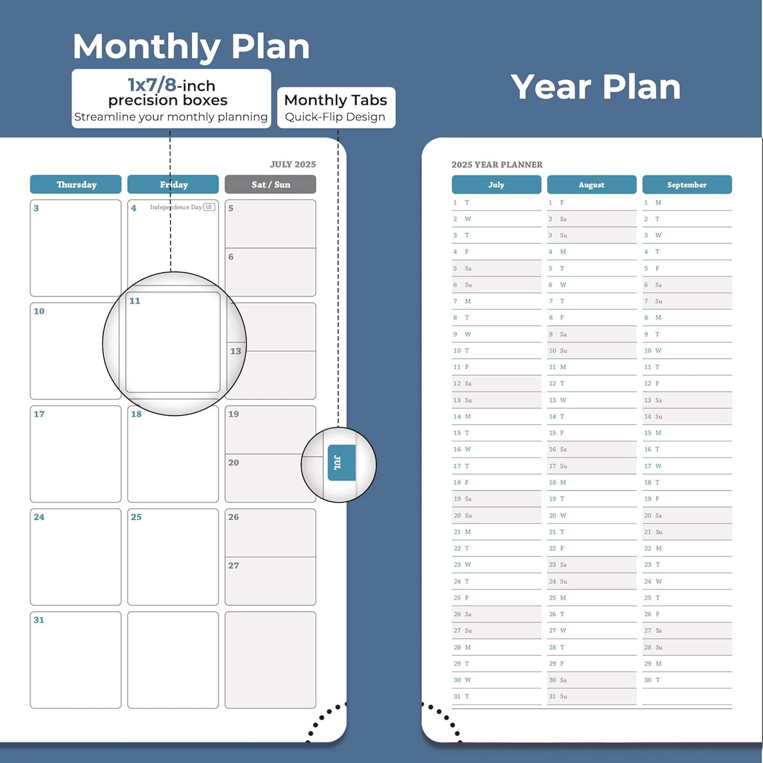 - Life Personalized System: Weekly plan, Monthly & year planner pages, holiday reminders throughout the year, birthday record area for relatives and friends; set up record inspiration and plans with the dot matrix note area; at the same time, weekly planner provides travel planning and bill expense management