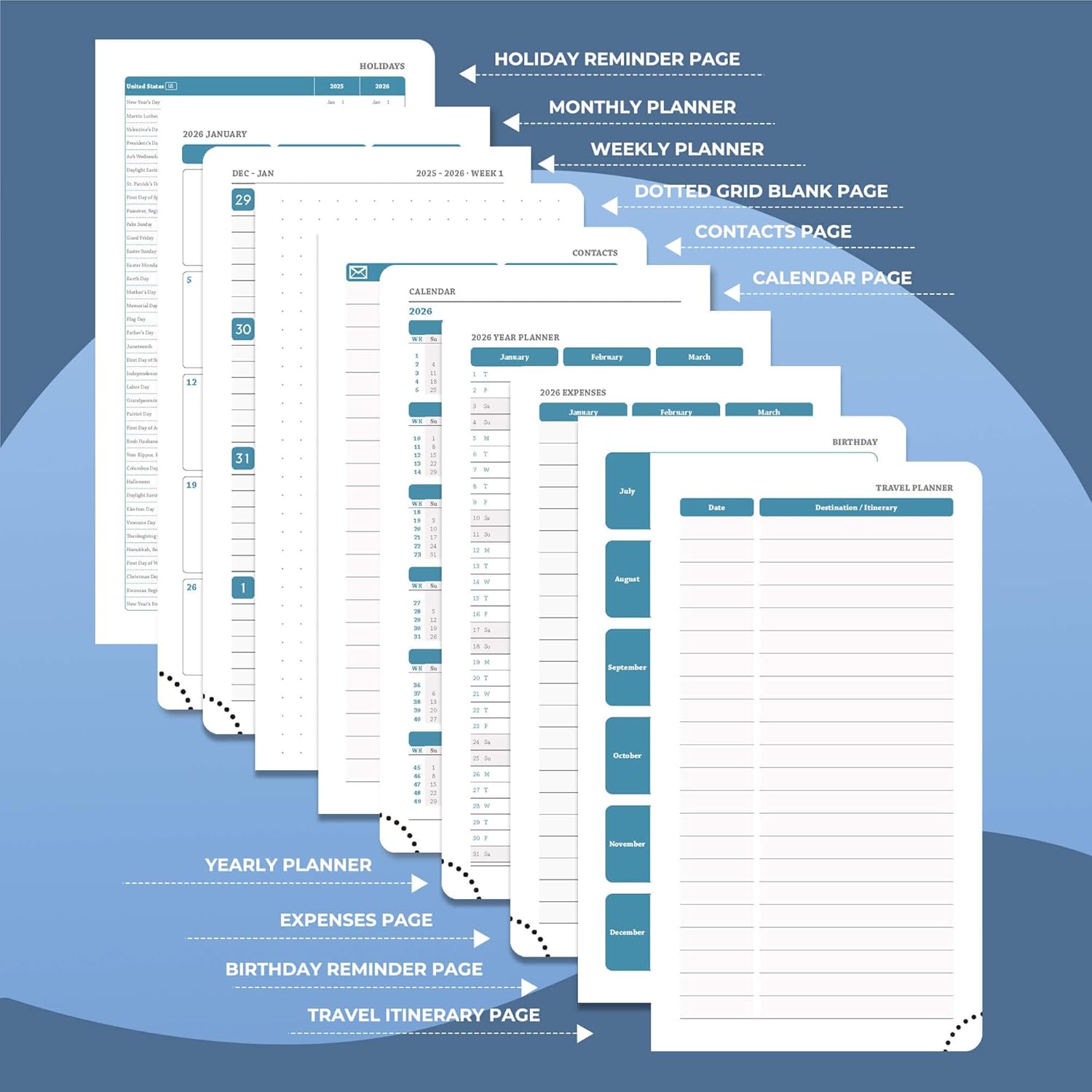 - Monthly Pocket Planner: Covers Jan.2026-Dec.2026. It adopts a double-page design for one week, so you can get a general overview without turning pages. The weekly planner page provides writing space for arrangement of daily tasks, priority management and activity records; the left side of the monthly plan marks important dates, and the right side plans special tasks