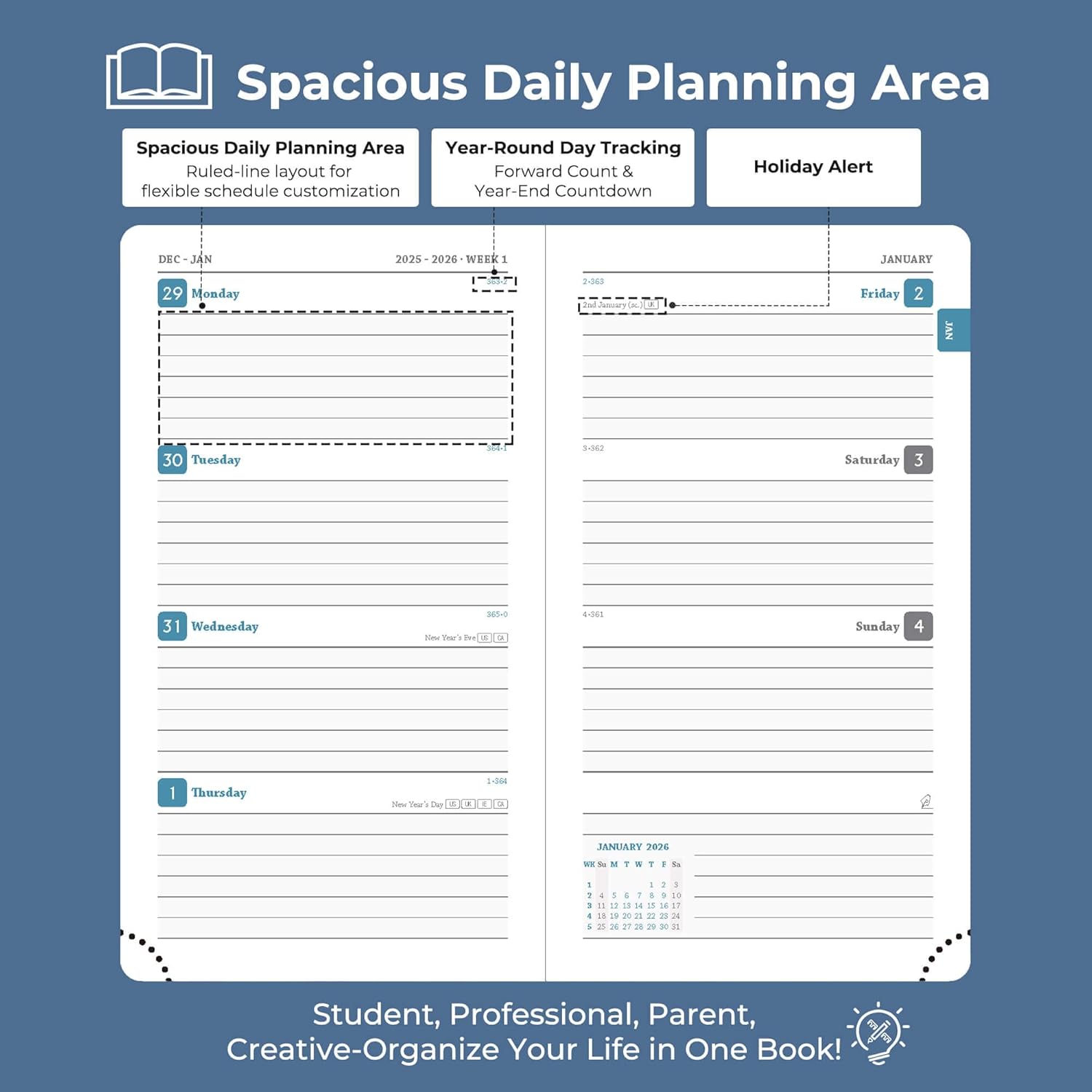 - Compatible 2026 Planner: Adaptable across lifestyles and roles. Professionals track workflows, conference logistics; students plan academic schedules, evaluations, and after-school; households manage vacation arrange & family activity