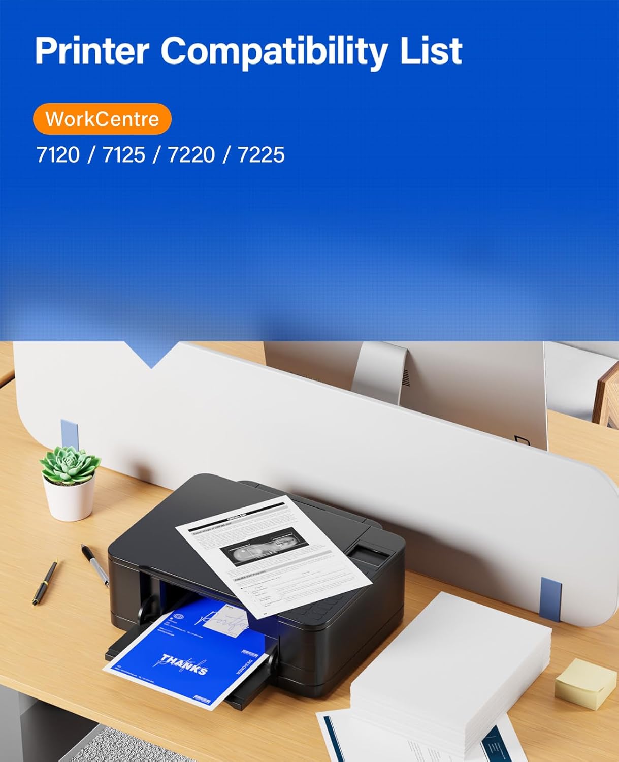 - Compatible Printer: Compatible with Xerox WorkCentre 7120, Xerox WorkCentre 7125 7220 7225; Compatible Toner Model:006R01457,006R01460,006R01459,006R01458