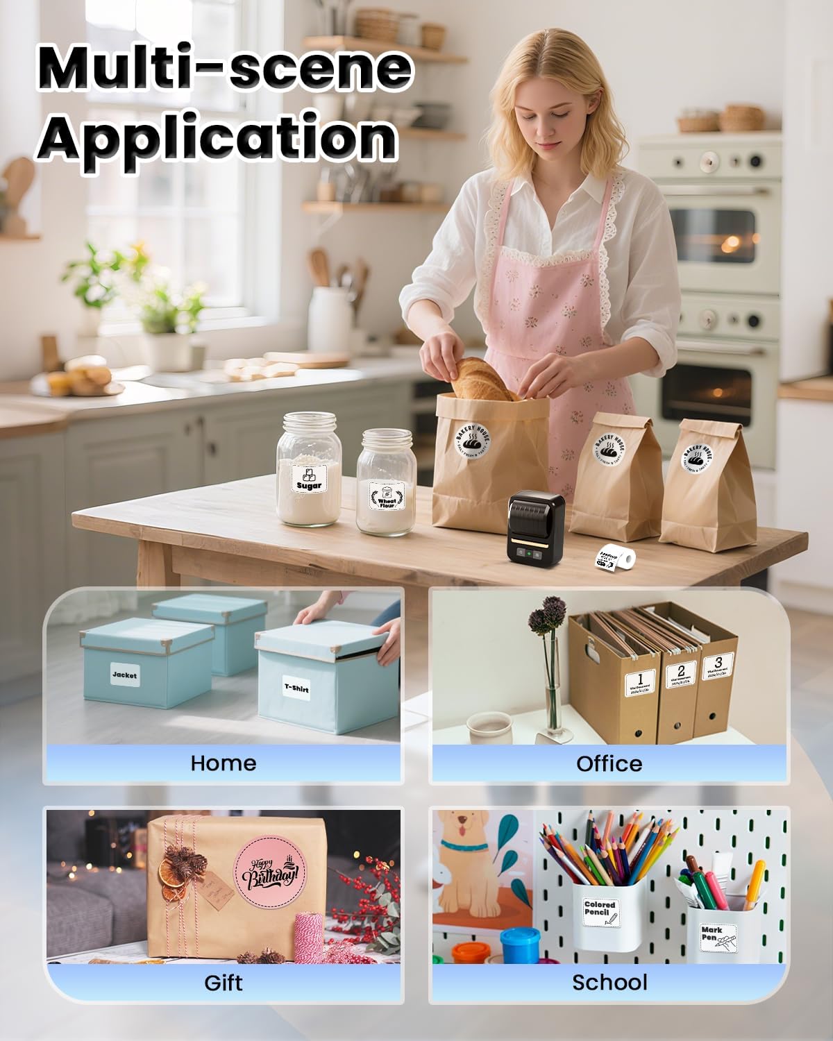 - ๐๐ข๐๐๐ฅ๐ฒ ๐๐ฌ๐๐ ๐๐จ๐ซ ๐๐ฎ๐ฌ๐ข๐ง๐๐ฌ๐ฌ ๐๐ง๐ ๐๐๐๐ข๐๐: The N20 thermal label maker machine supports printing labels that are 3/4 inch-2 inch wide, use for small businesses (price tags, brand logo, product information, barcodes, QR codes, address labels), for office and school (folders, dates, name tags, item identification), for home organization (food container, kitchen storage, cosmetics marking).