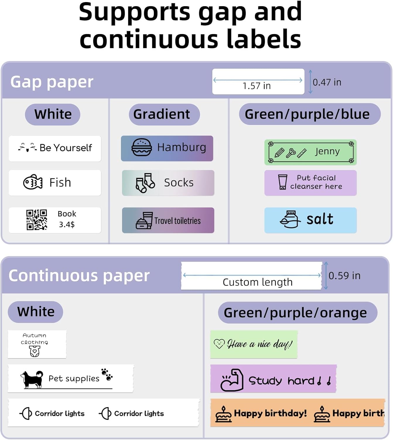 - Wide Application: This label maker is ideal for both personal and professional use; At home, organize clothes, food storage, cosmetics, and mail; In the office, manage notebook tags, price tags, reminder tags, and other supplies; For schools, it helps teachers and students label classroom items, personal belongings, and name tags