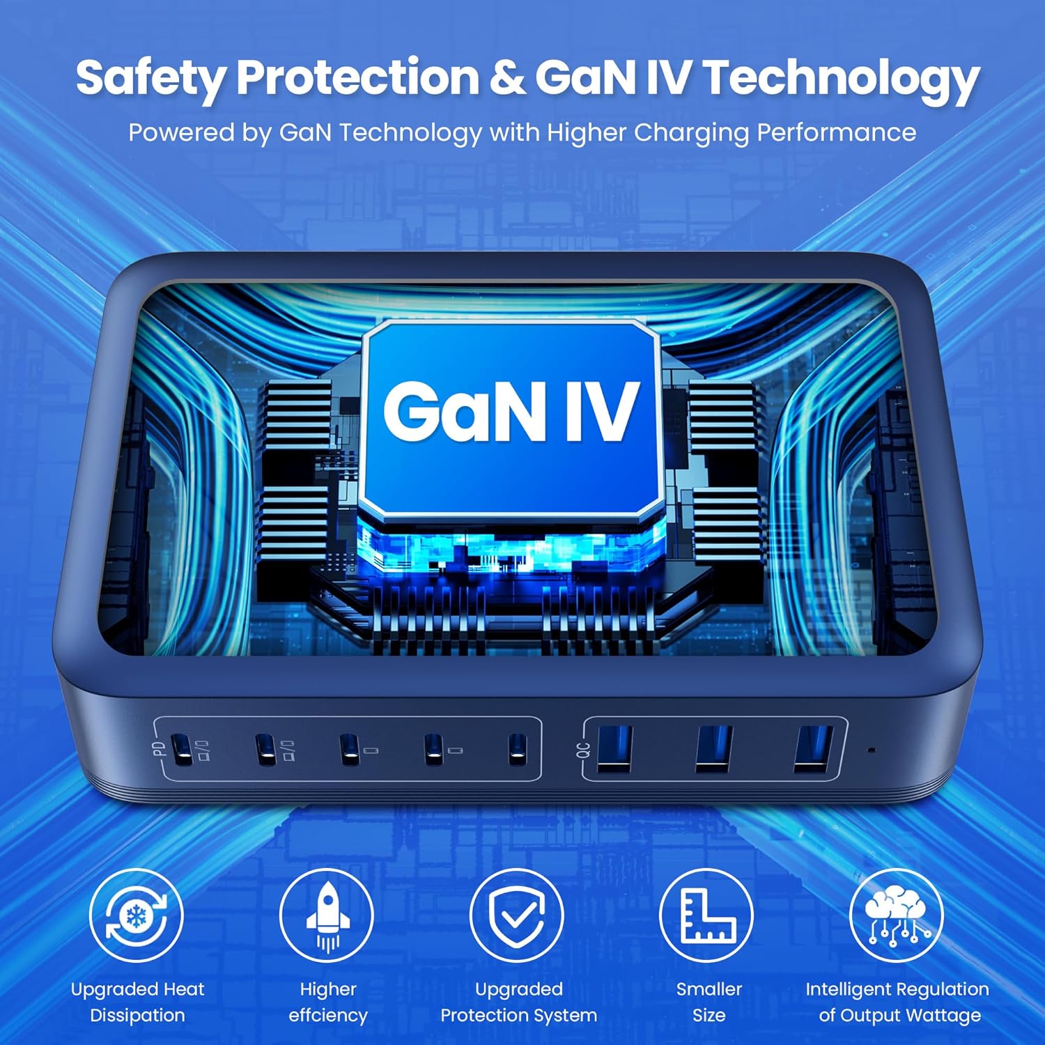 USB C Charger Block 515W[2025 Upgraded] GaN IV 8 Port Fast Charging Station Hub,Dual PD 100W USB C Laptop Charger Compatible with MacBook Pro/Air,iPad,iPhone 16/15,Galaxy S23/S24 Steam Deck Dell XPS