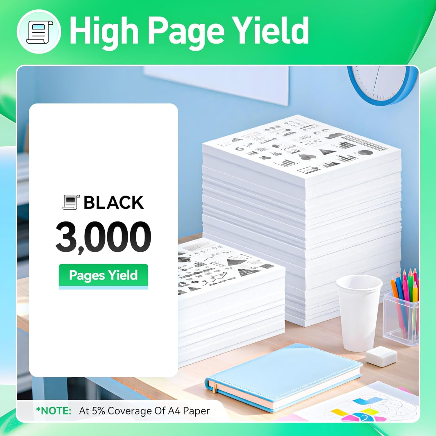 - High-Yield: up to 3,000‬ pages per 55B1000 Black (Total 3,000 pages, 5% coverage).