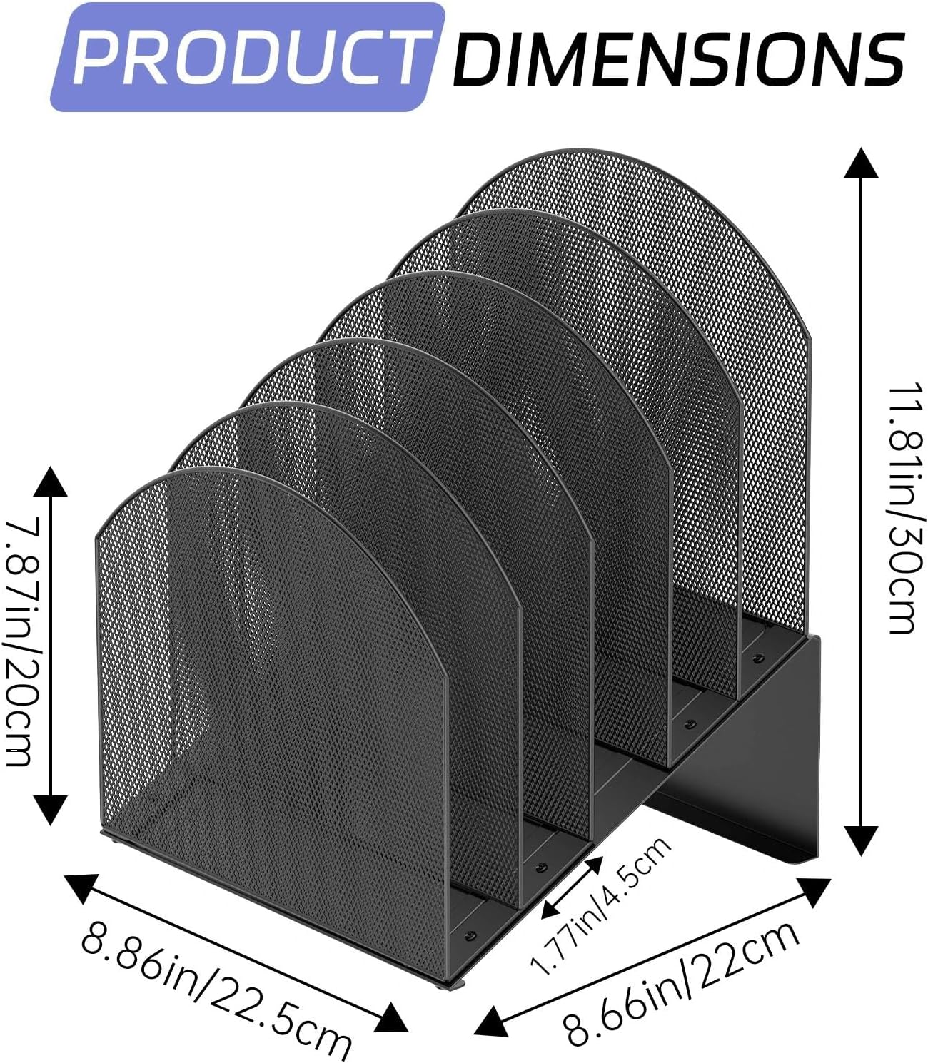 - Step-up Design: This desk file organizer with 5 mesh grids features an inclined design, allowing files to be separated for a clear view. It not only boasts a sense of design but also helps you sort and find office supplies efficiently.