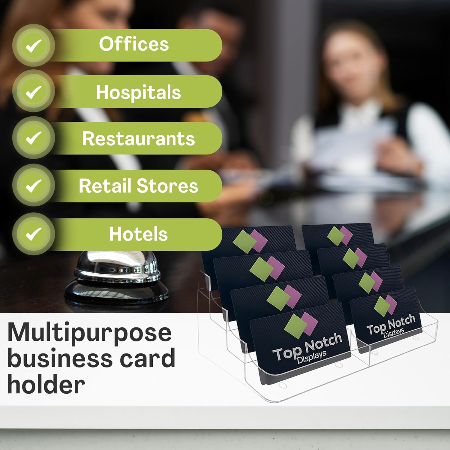 - 8 Pocket Clear Acrylic Business/Gift Card Holder, Fits standard-sized business cards or gift cards, For Use In Office, Retail, and Hospitality - Pack of 2