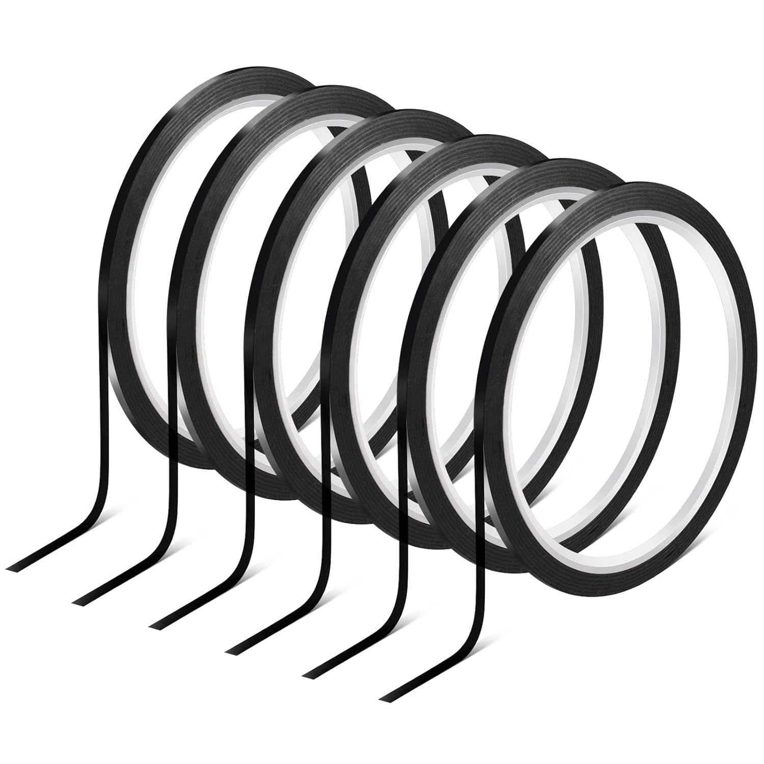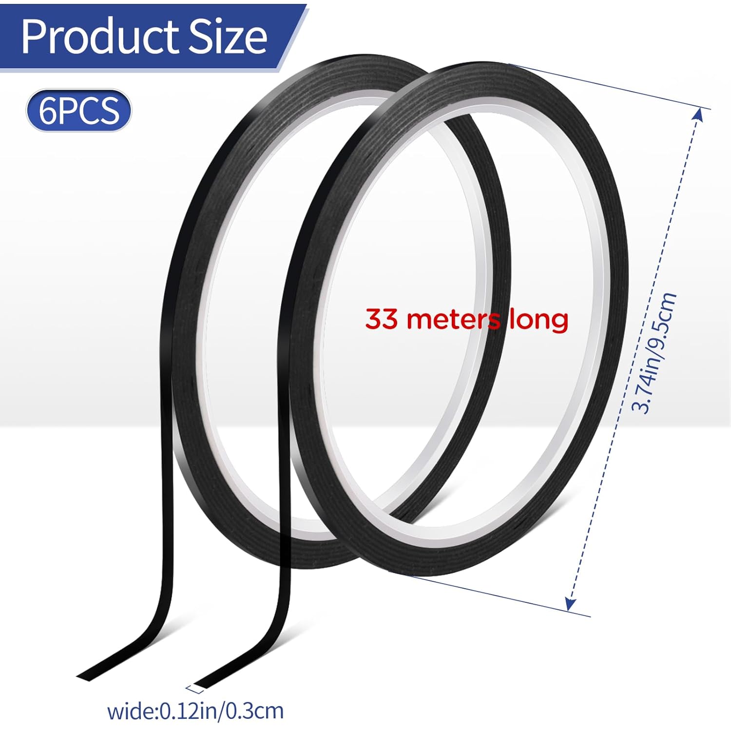 - Set of 6 rolls of high-quality 3mm (1/8 inch) pin stripe tape for car, perfect for grid creating, detailing, or whiteboard use. Each roll is 108 feet long, made of durable PET with strong self-adhesive backing, no paper waste