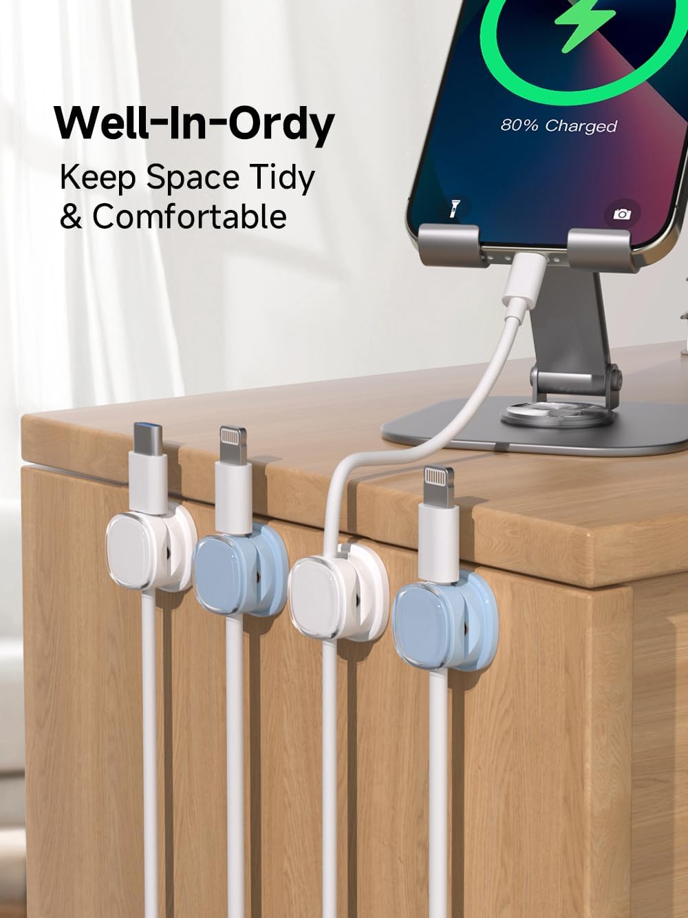 - Magnetic Locking & No Falling Off: Secure magnetic grasp opening and closing allow easy cord in,and powerful magnetic lock the organizer firmly to hold any charging head without falling off, more convenient to pull the cables out for smoothly using
