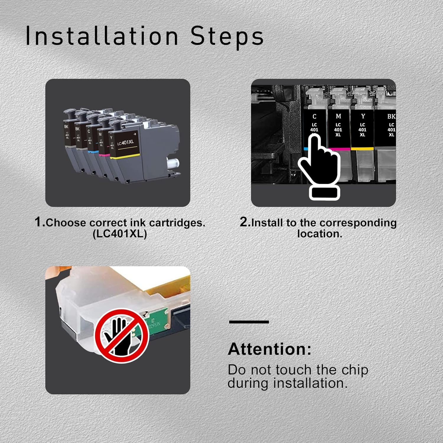 - Each LC401XL Ink Cartridge Undergoes a Strict Quality Testing Procedure to Ensure Quality Printout and Compatibility with Your Printer. Each Ink Cartridges Can Display the Ink Level on the Printer