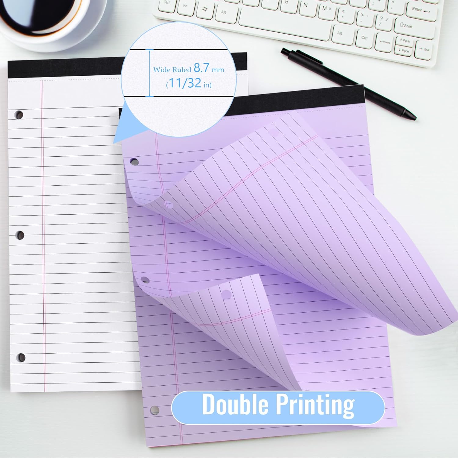 - 3-Hole Design: Wide ruled loose leaf paper can be placed in a 3-ring binder or pointed file folder as needed to keep school and project notes organized