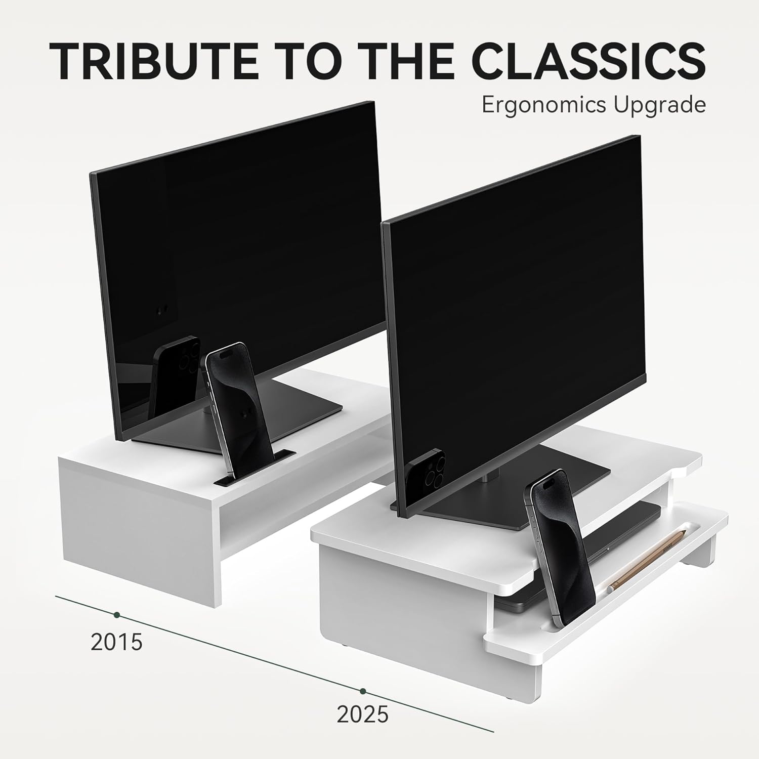 - 【Built to Last with Premium Materials】 Crafted from high-density MDF panel, this monitor riser offers a sleek, modern look while supporting up to 110 lbs—ideal for monitors, all-in-one PCs, or heavy displays