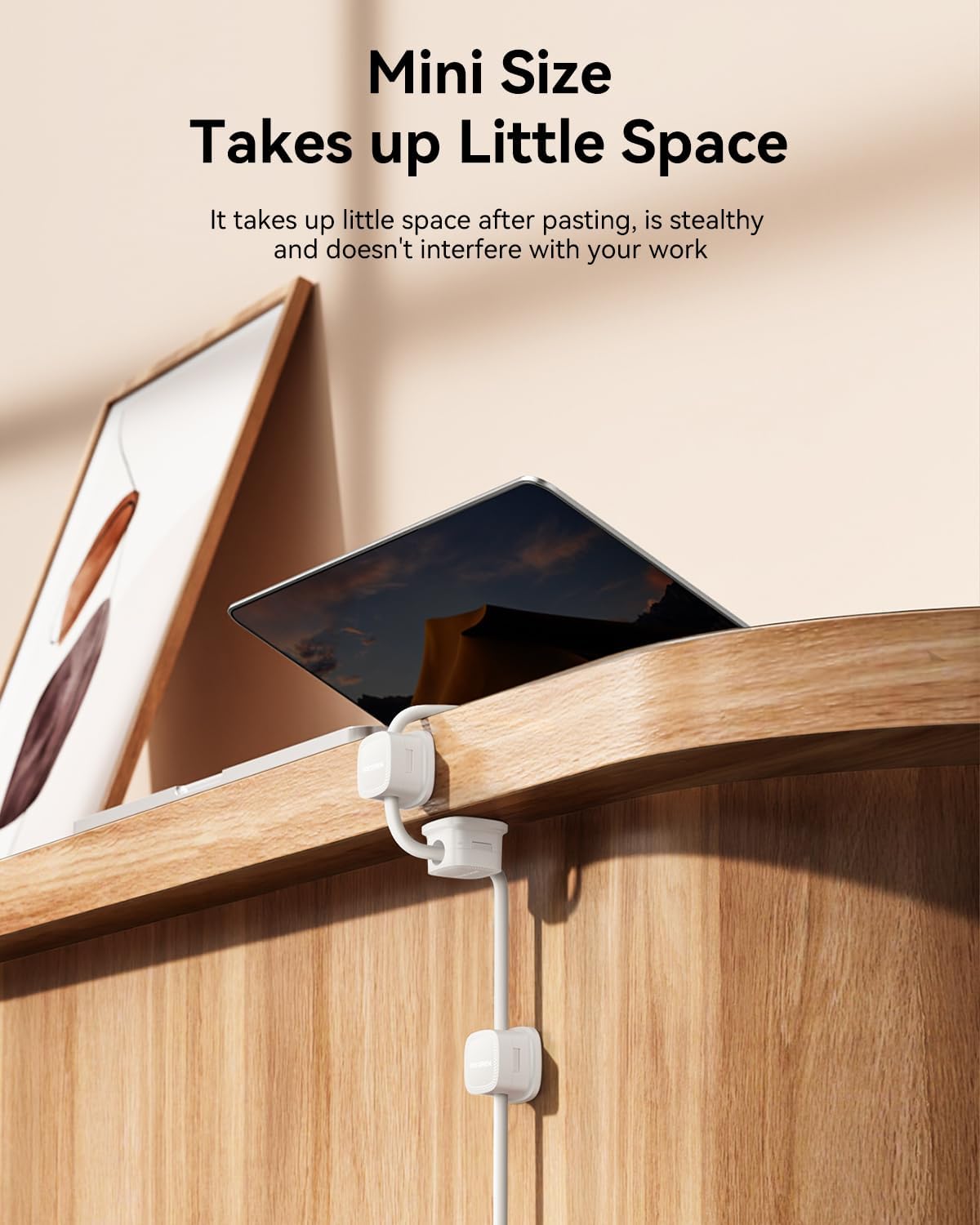 - General Compatibility:Cord holder with the 7.5mm widened card slot (7.5mm Cable Slot) is suitable for USB cable, HDMI cable, charger cable, home appliance cable, etc. (diameter ≤7.5mm). The spring clamping structure ensures that the wire is stable and does not slip. Smooth Pull-out Design makes it easier to use cables and avoid wrapping