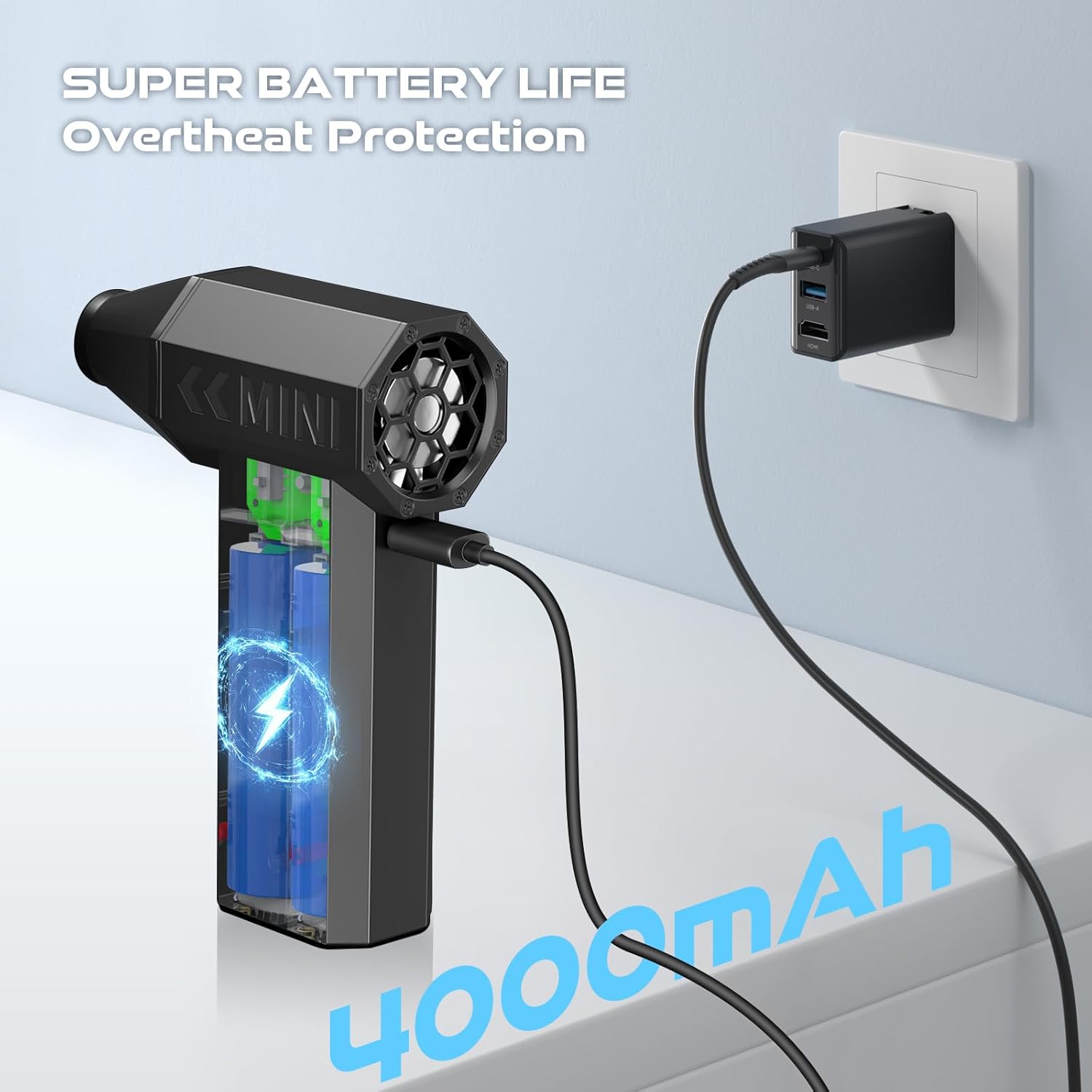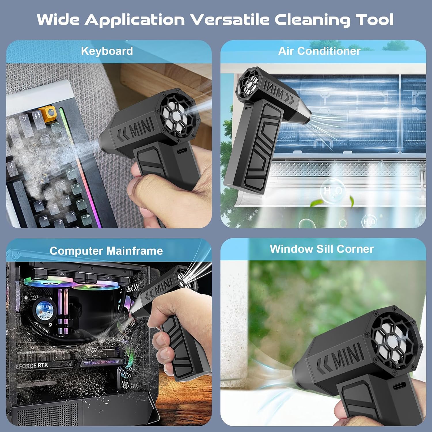Electric Air Duster, 110000RPM Super Power Turbo Fan Cordless Air Duster, 3-Gear Adjustable Mini Blower with Fast Charging, Dust Blower for Computer, Keyboard, House, Outdoor and Car