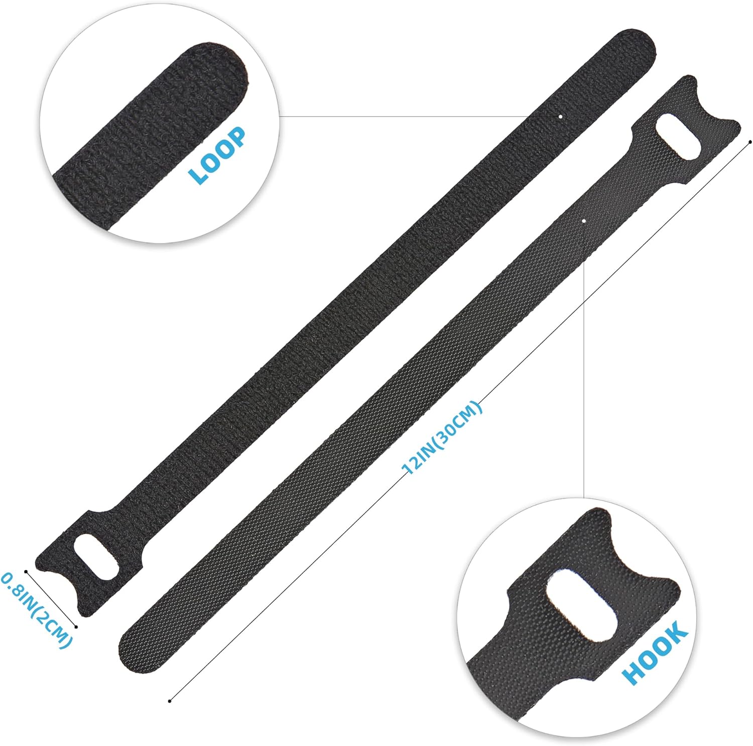 12 Inch Multi-Colour Cable Ties 50 PCS Reusable Fastening Cable Straps Adjustable Hook & Loop Organizer Straps Cords Management for Home, Office and Data Centers
