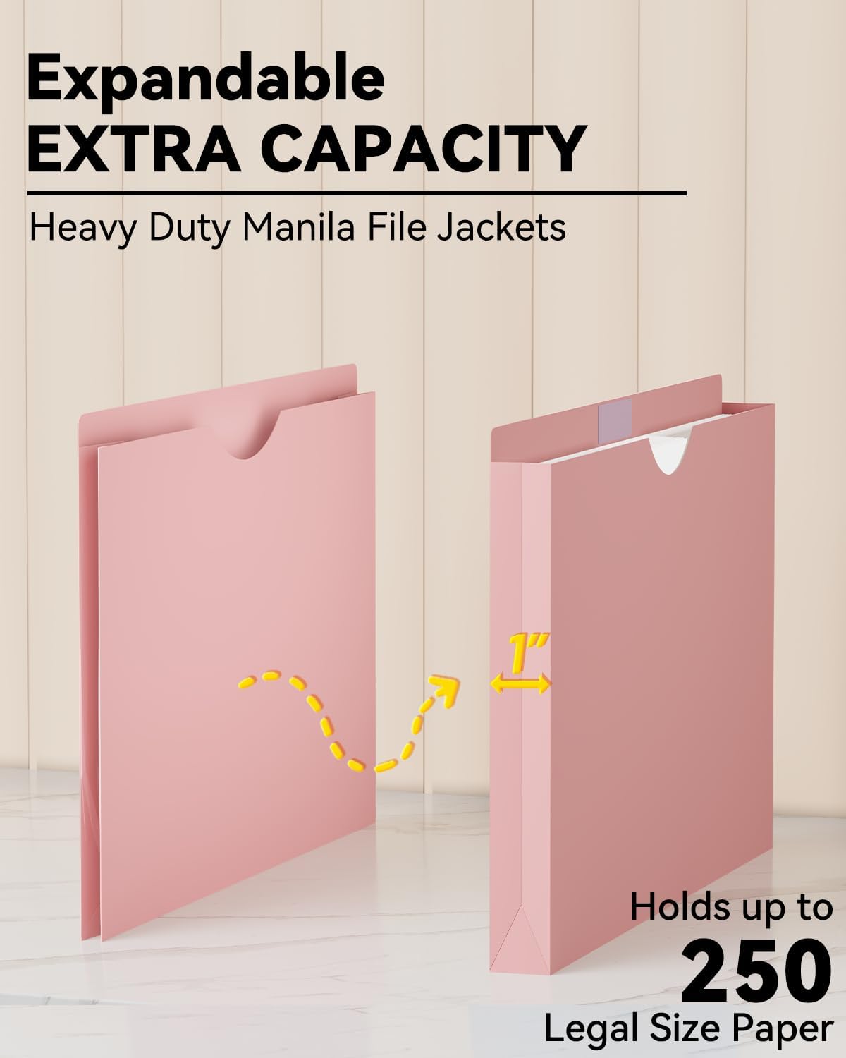 - 【EXTRA CAPACITY】 ANSOOK manila file jackets legal size has 1 inch expansion,which allow you to hold up to 250 sheets of legal size flies or A4 papers. 12 manilla folders can accommodate a variety of files