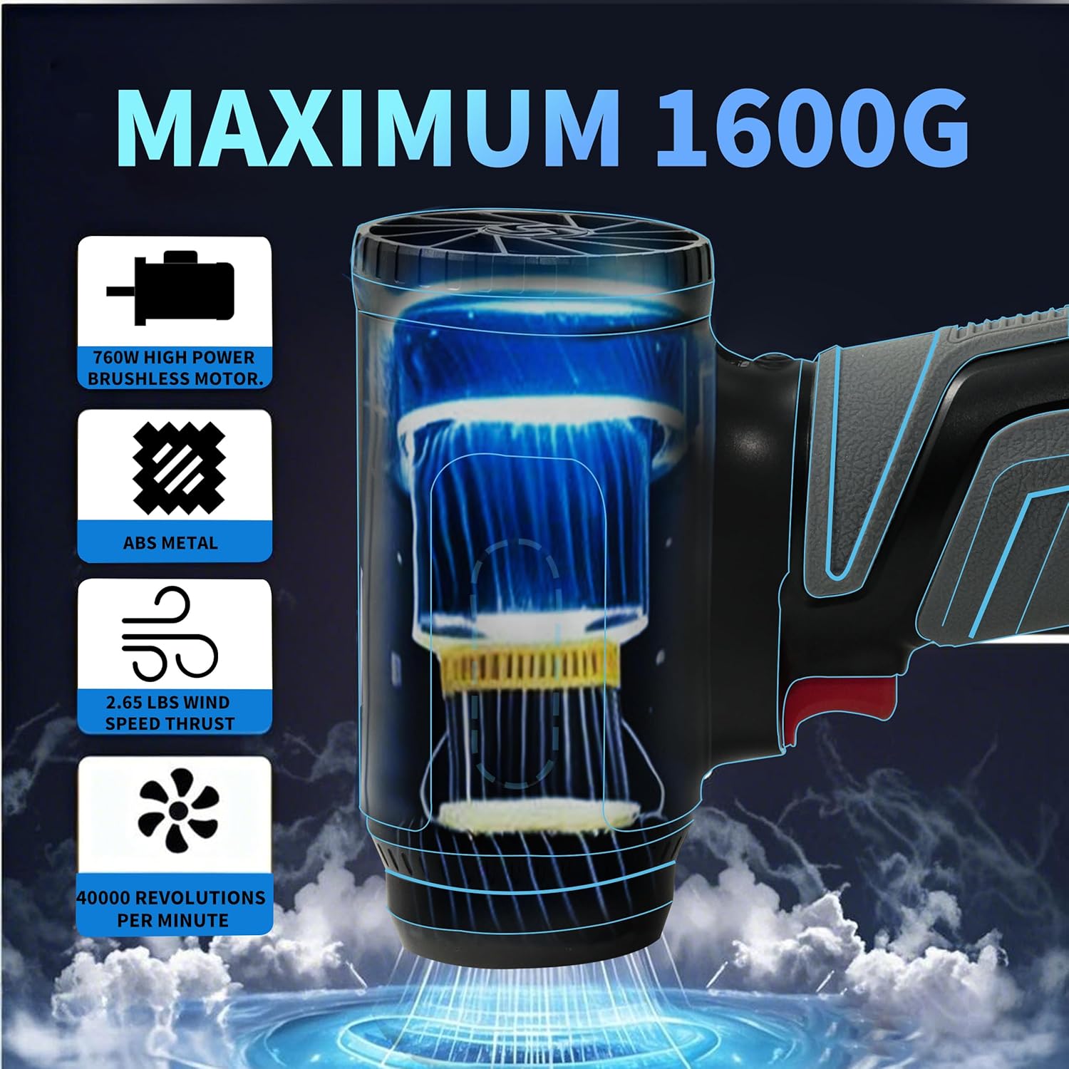 - Powerful Compressed Air - This electric air duster features a flexible design and a 64mm turbofan ducted motor, generating 3.55 pounds of thrust and boasting a powerful 760-watt output power. With a thrust range from 100g to 1600g, it easily meets a variety of cleaning purposes and scenarios.