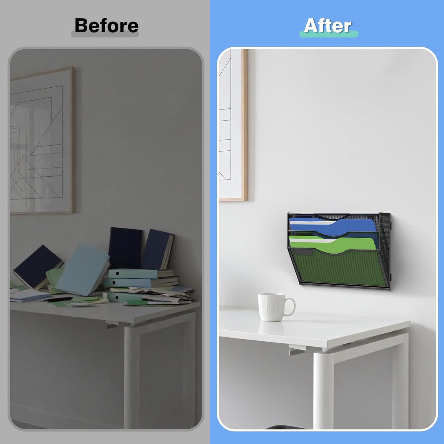 - The wall file organizer with 5 vertical pockets for filing and organizing, can hold all the papers, folders, mail, magazines