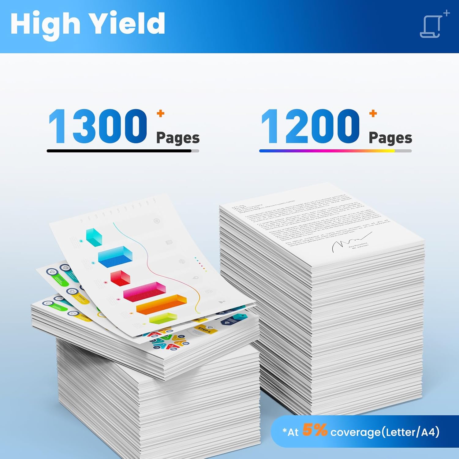 - 218A Toner Cartridge Yield (approx.): 218A toner cartridges 4 pack high yield up to 1,300 pages per 218A black toner cartridge, 1,200 pages per 218A color toner cartridge (Letter/A4, at 5% Coverage).
