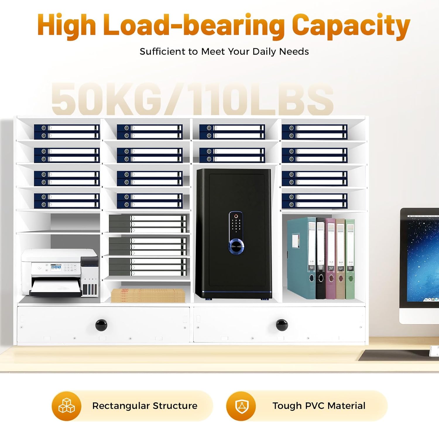 - 【Wide Space】: It has 32 storage spaces, a wide top, and two drawers, making it easy to accommodate binders, journals, paper, and documents, reducing the burden on the countertop and creating a clean environment.