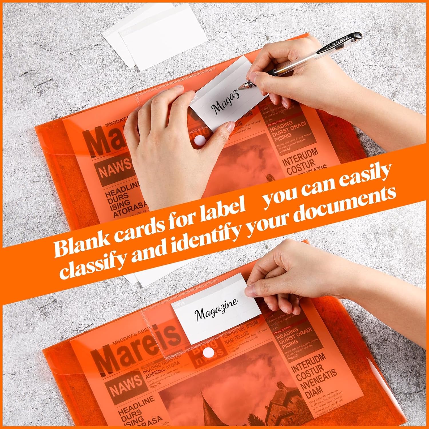 - Minimalist Design: our plastic file organizer in classic orange exudes sophistication and understated elegance, its minimalistic design, complemented by an exquisite button design, ensures your documents stay secure and in place, preventing unsightly creases and untimely loss of important documents, moreover, these envelopes come equipped with a tag slot, enabling easy organization and quick access to documents