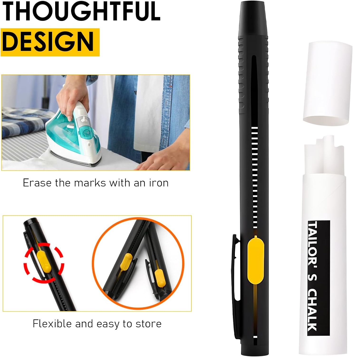 - 【Smooth and Precise Writing】Our heat erasable fabric marker for sewing feature a fine tip that glides effortlessly on cotton, knits, and most fabrics without skipping. Suitable for fine tailoring or pattern design