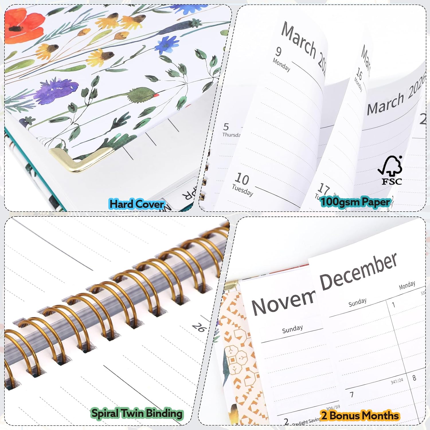 - 【Ideal Gift】The 2026 calendar planner can be used to manage your study time, boost your work productivity, tracking progress and completion of task and remind important things and deadlines. It is a home school office essential for man and women to plan their life. It aslo can be a ideal gift for Christmas and New Year.