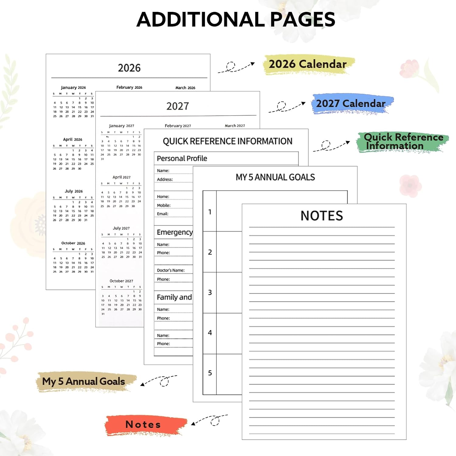 - 【2026 Planner】The 2026 planner covers 12 months from January to December, with monthly pages, weekly pages, quick reference information page, personal information page, holiday and contact page for easier yearly scheduling and planning, helping you balance your school, work, and personal life.