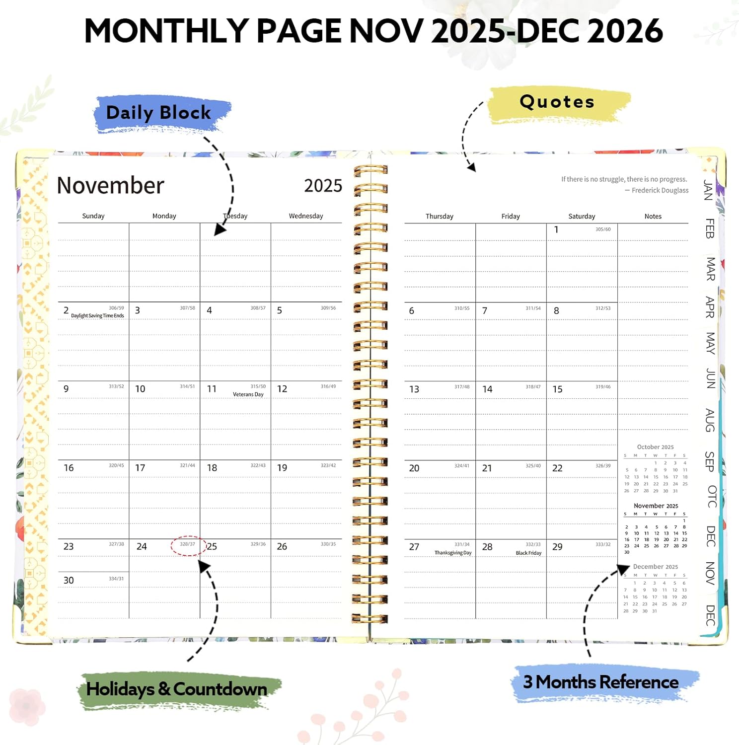 - 【Thoughtful Designs】The 2026 academic planner comes with month tabs for quick lookup, and the double-wire spiral binding ensures the planner lays flat, making your reading and writing easier. The elastic band keeps the notebook closed when not in use, the back pocket is suitable for storing invoices, cards, notes, etc., and the rounded corner design keeps your hands free from scratches.