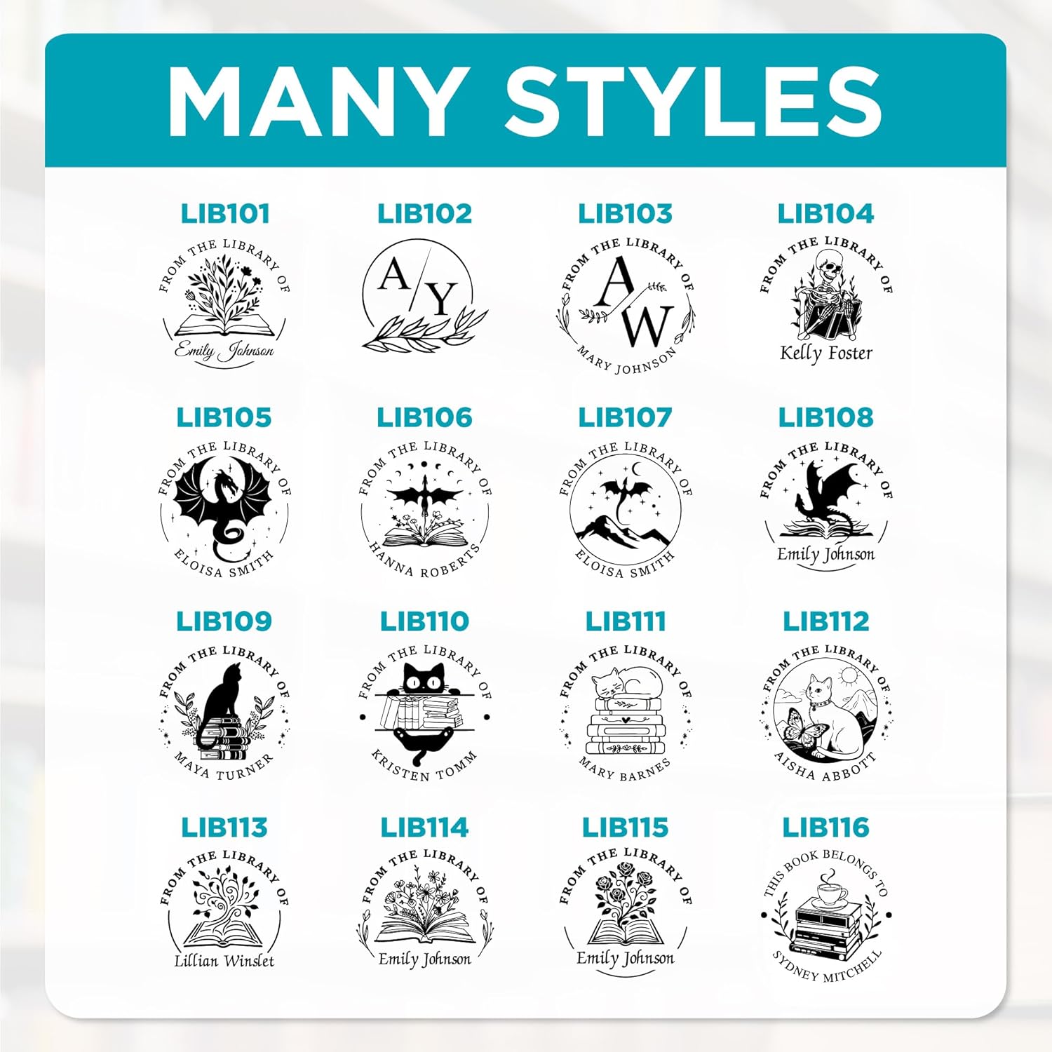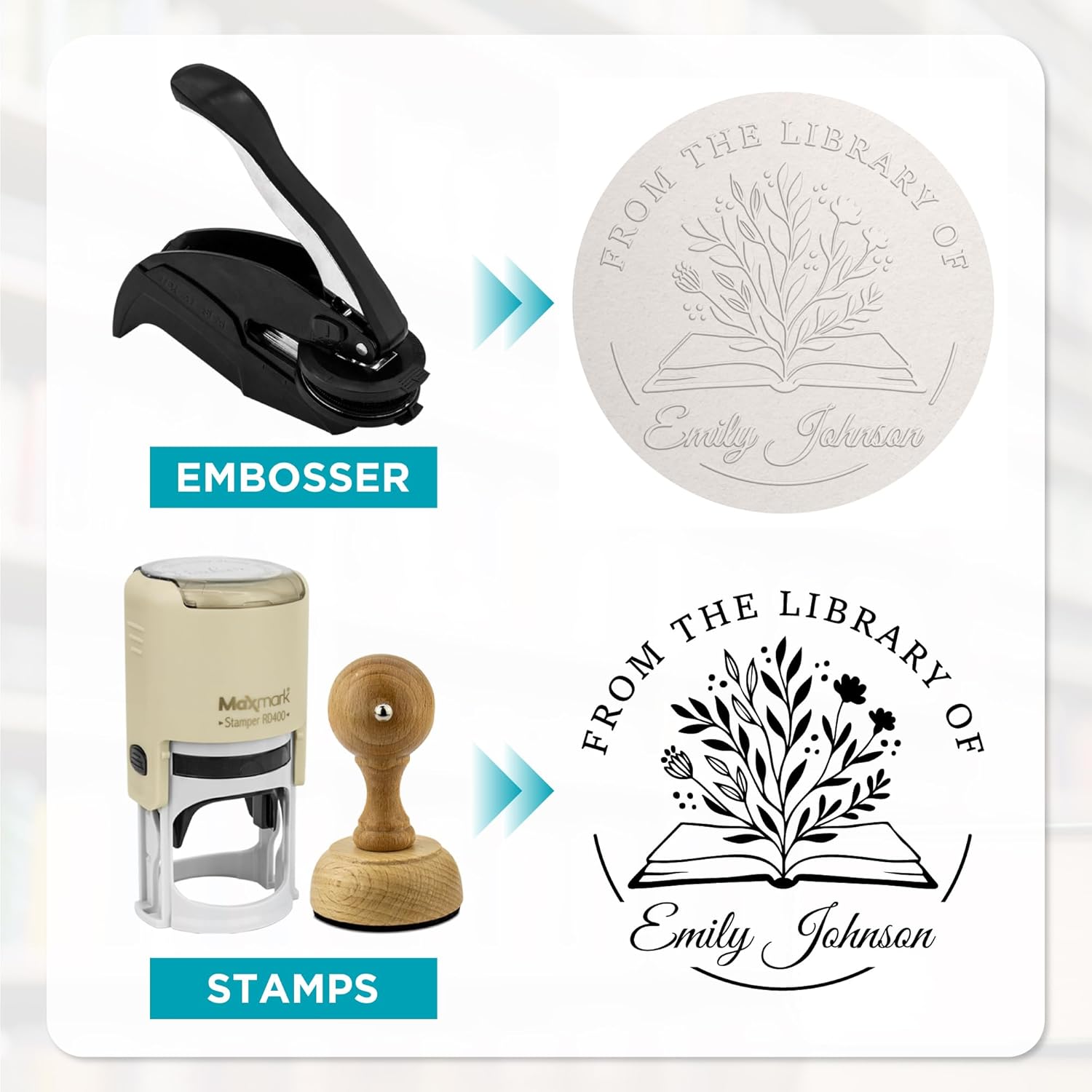 Custom Library Embosser - Style 114 - Embosser, Wood Stamp or Self Inking Stamp - Book Embosser Includes 50 Gold Seals - Custom Stamp Seal from The Library of