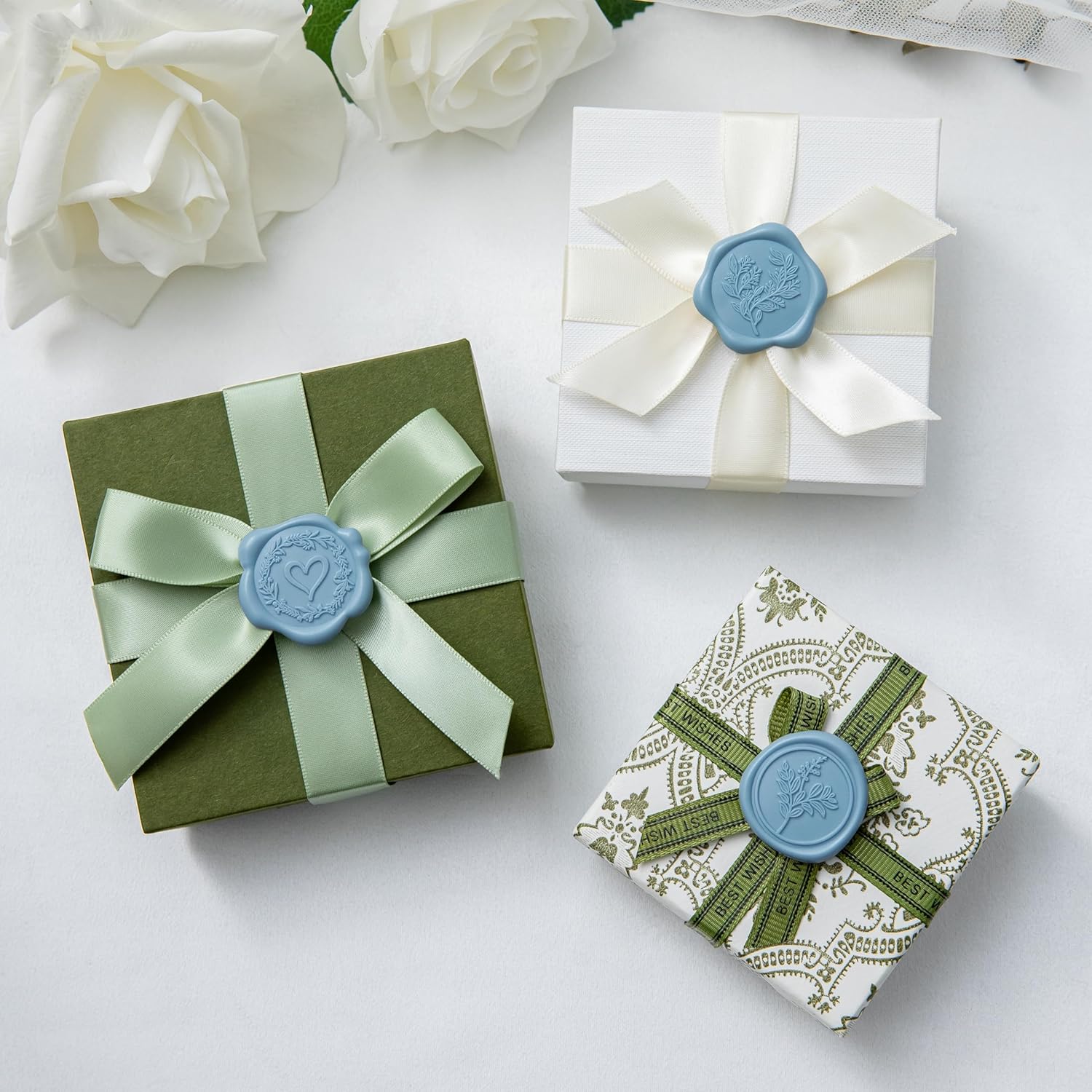60 Pcs Dusty Blue Wax Seal Stickers Self-Adhesive Envelope Seals Stamp Stickers, Perfect for Wedding Invitations Seating Chart Christmas Gift Wrapping 3 Designs in 1 Pack
