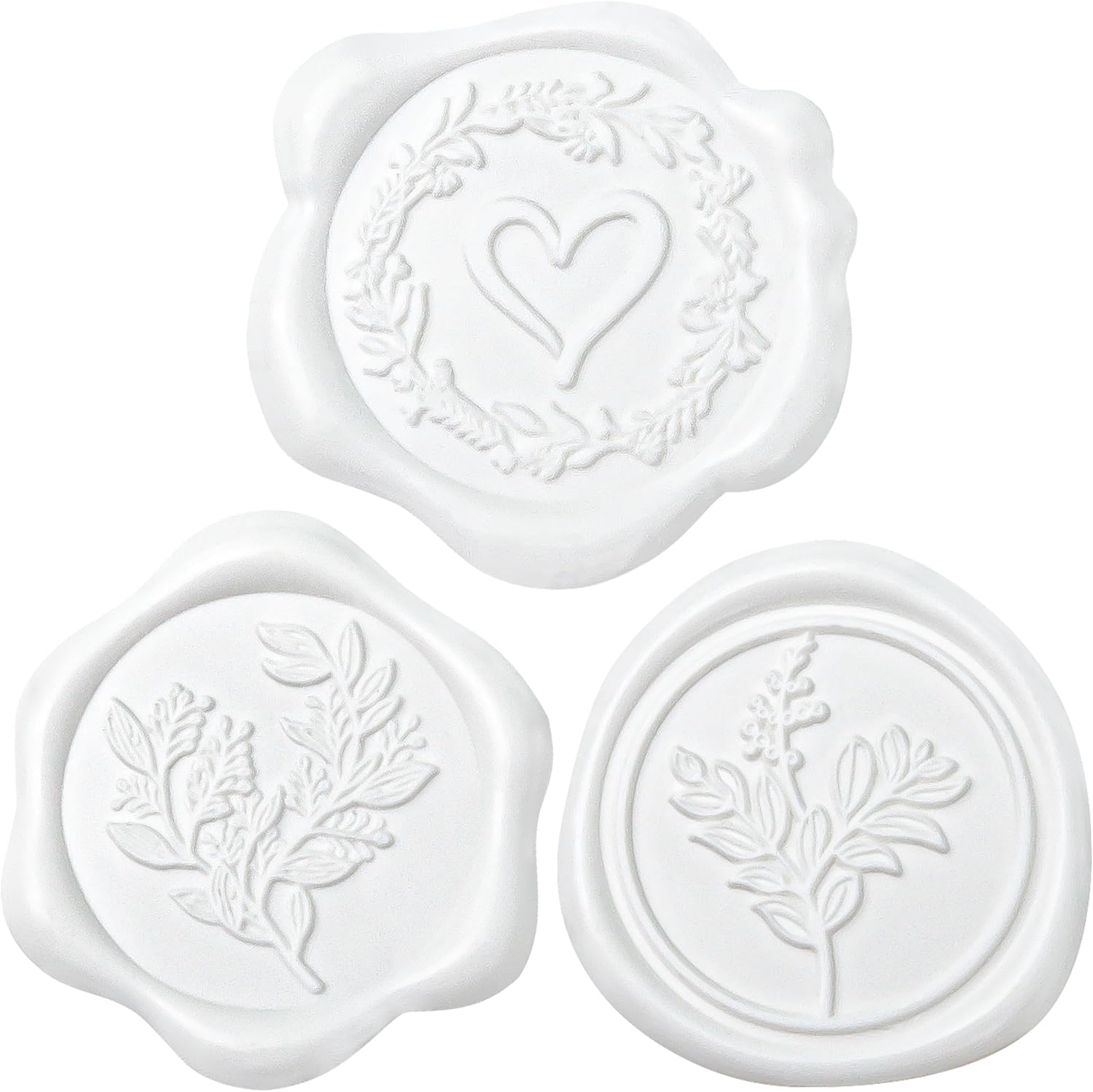 60 Pcs White Wax Seal Stickers Self-Adhesive Envelope Seals Stamp Stickers, Perfect for Wedding Invitations Seating Chart Christmas Gift Wrapping 3 Designs in 1 Pack