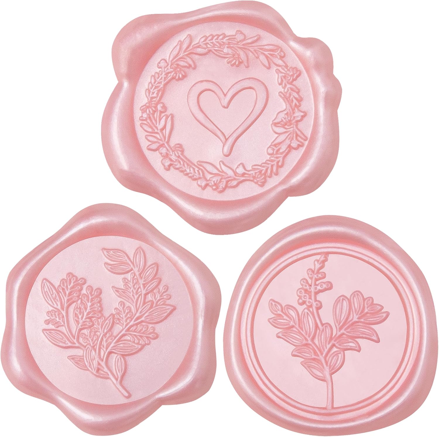 60 Pcs Pink Wax Seal Stickers Self-Adhesive Envelope Seals Stamp Stickers, Perfect for Wedding Invitations Seating Chart Christmas Gift Wrapping 3 Designs in 1 Pack
