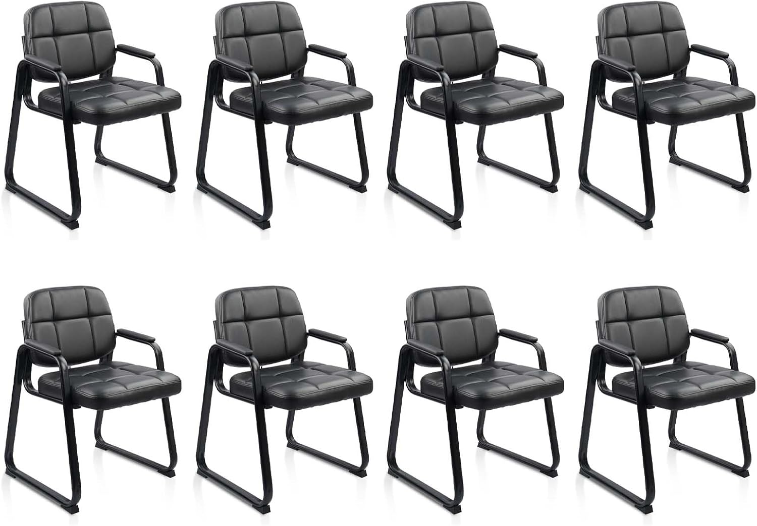 CLATINA Waiting Room Guest Chair with Bonded Leather Padded Arm Rest for Office Reception and Conference Desk Black with Sled Base 8 Pack