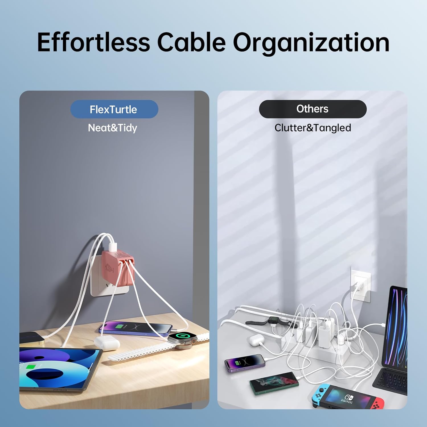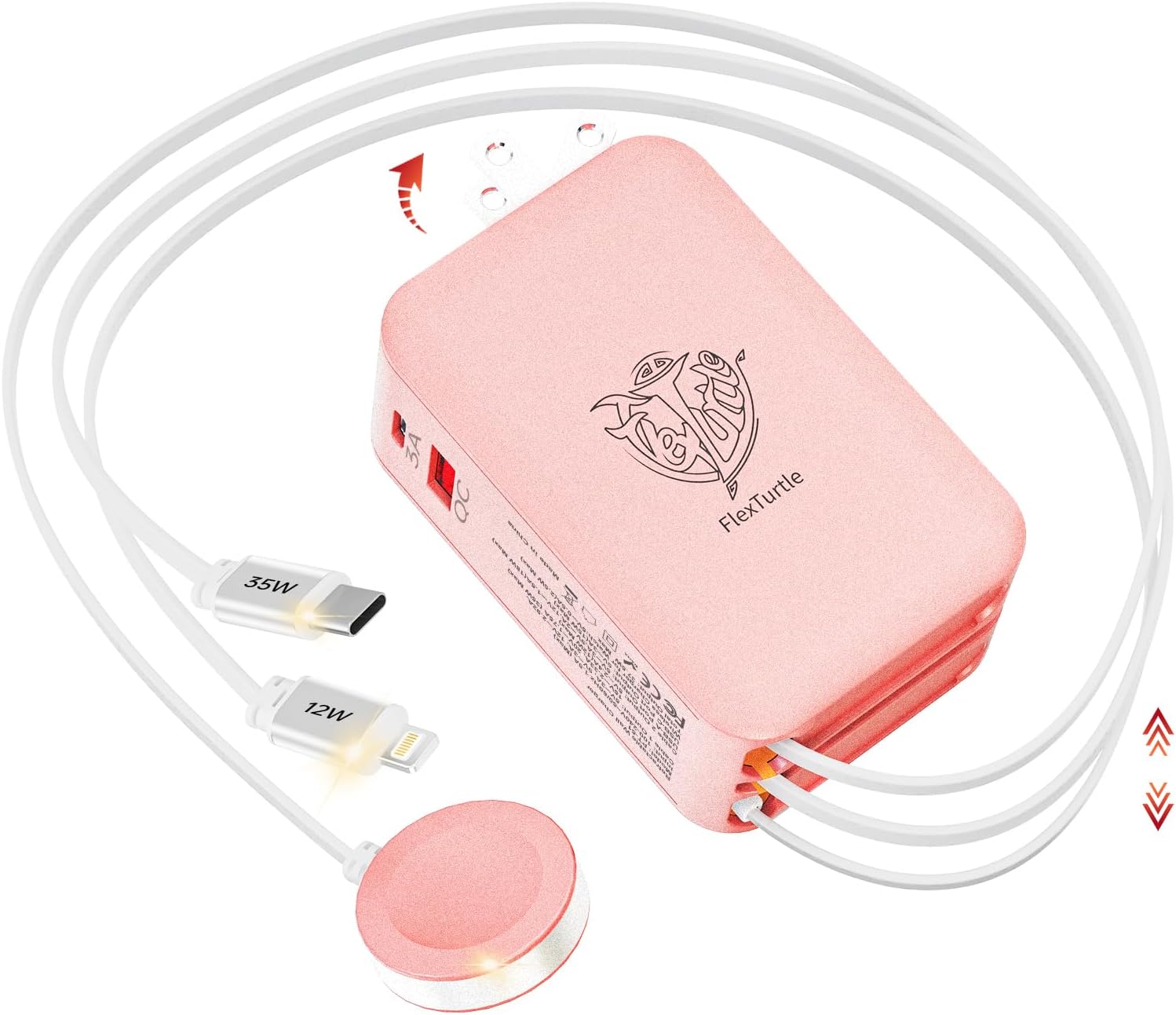 - 【Space-Saving Retractable Design 】-The FlexTurtle retractable phone charger wall plug features three 3.2ft retractable cables (USB-C, Lightning, and Apple Watch), eliminating clutter. Perfect as a phone charging station for desks, nightstands, or as travel accessories for women and men