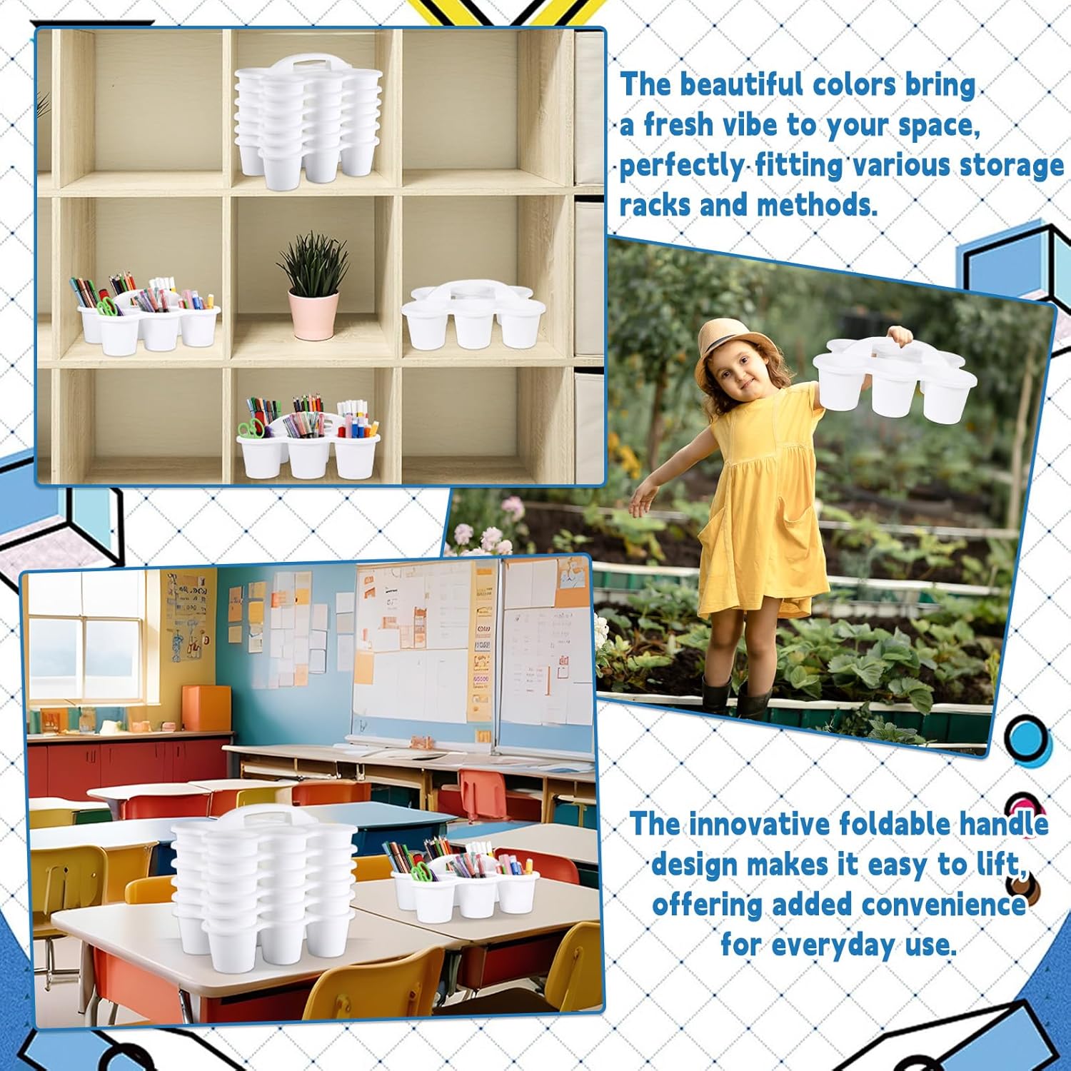 6 Pack Classroom Caddy with Handle Plastic Storage Caddy Organizer with 6 Compartments Drink Cup Caddies Holder Portable Storage Bin for Pencil, Crayon, Marker, Home, Office, School Supplies(White)