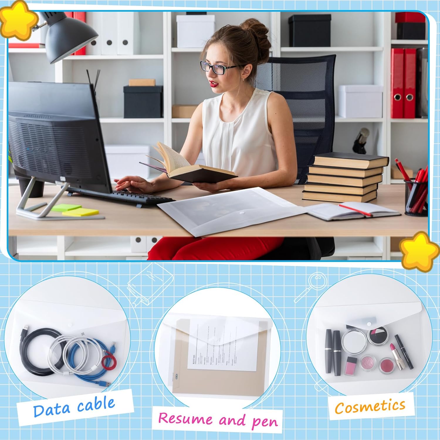 - Wide Applications: our plastic envelopes with snap buttons are easy to carry and suitable for keeping documents, bills, credit cards, stickers, tickets, crafts or notes, etc. Suitable for office, business travel, home, work, meeting, etc