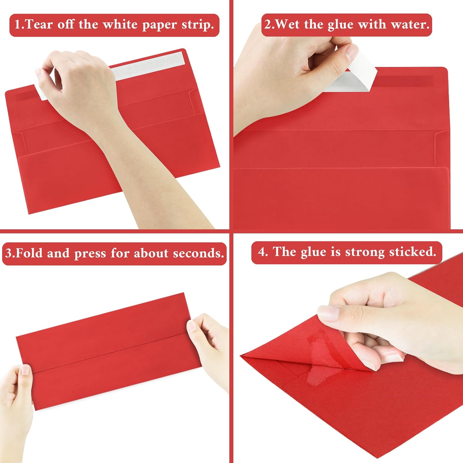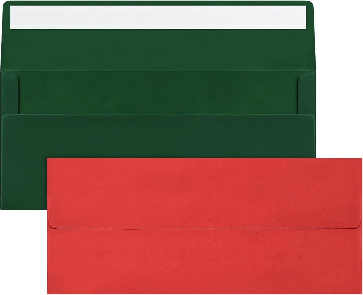 - 【Red and Dark Green #10 Business Envelopes】These #10 business envelopes feature a red and dark green color. The envelopes kit contains 50 pieces 4 1/8 x 9 1/2 Inches red envelopes and 50 pieces 4 1/8 x 9 1/2 Inches dark green envelopes, perfect for your office or home purposes