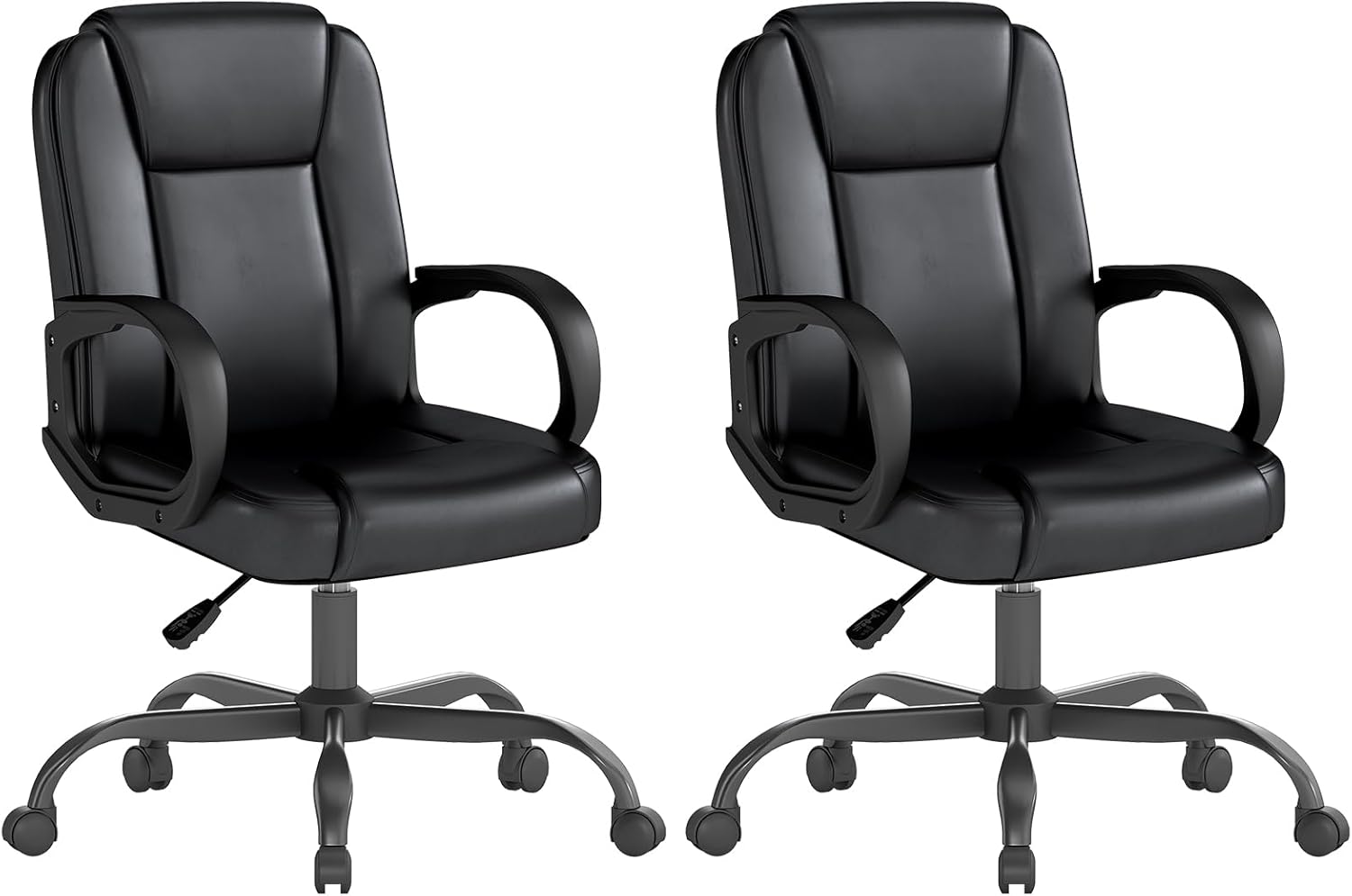 ZZH Executive Office Chair, Leather Desk Computer Chair with Armrests, Mid-Back Swivel Adjustable for Home Office, 2PC, Black