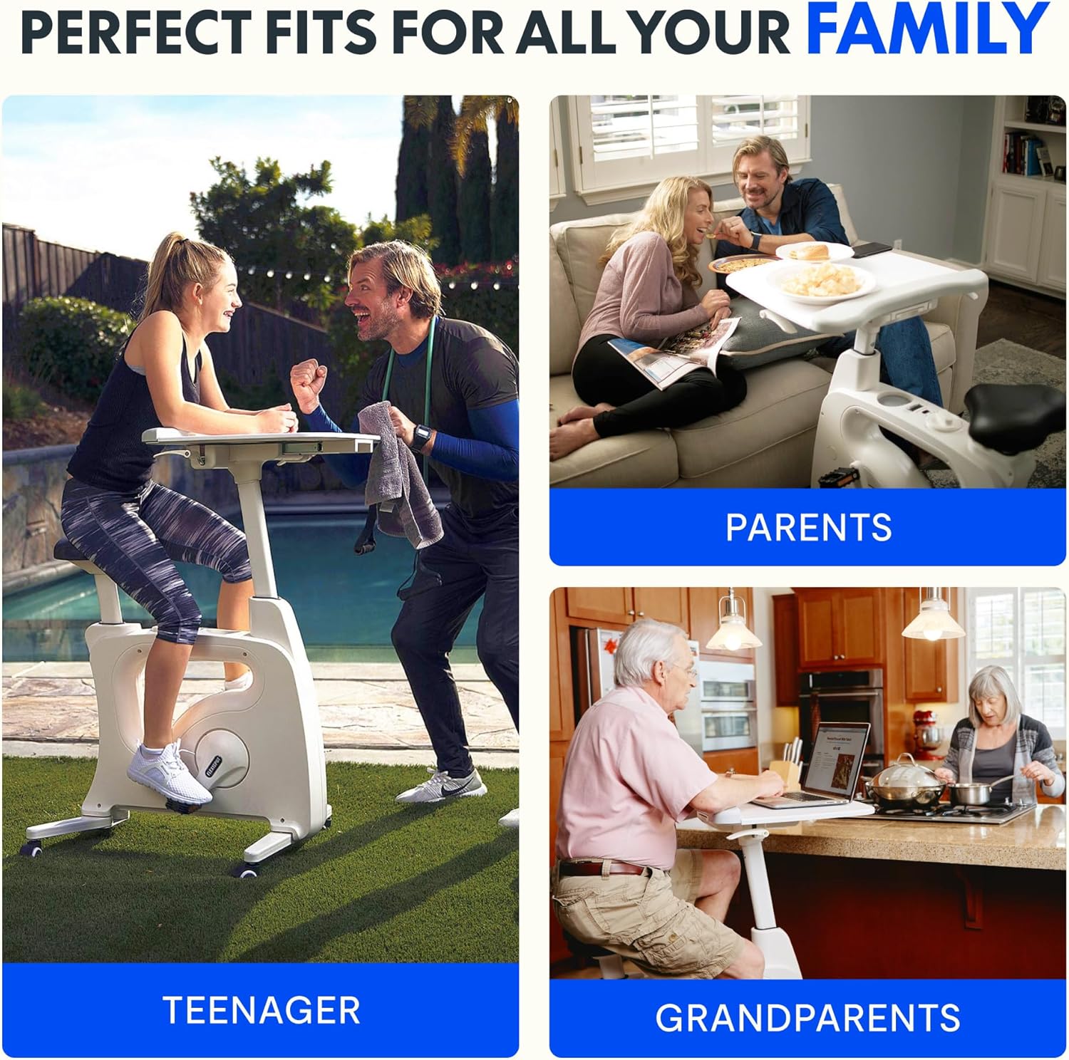- Special Feature : 3-in-1 movable desk workstation(standing desk+chair+ ebike)