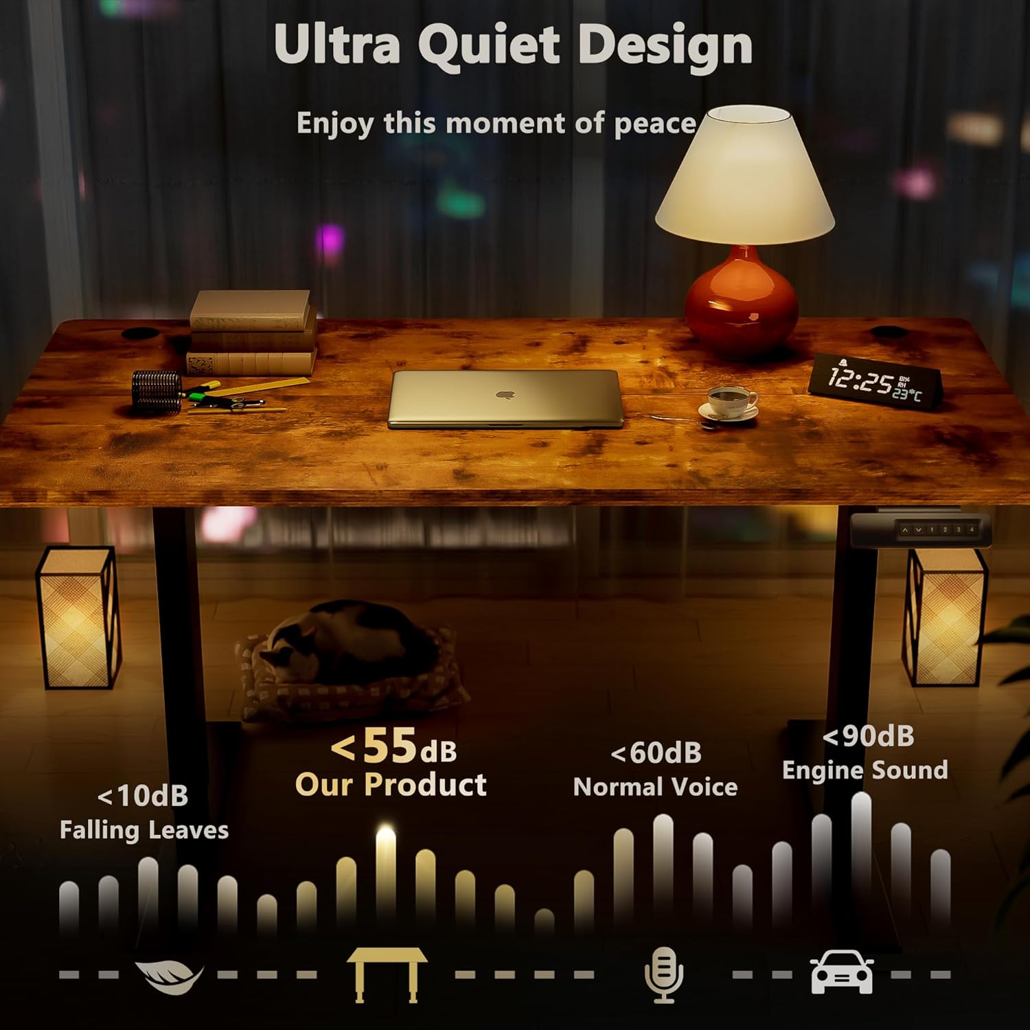 - 【Durable & Quiet Motor】– Designed for peak performance, our electric standing desk boasts a high-quality motor that delivers smooth, quiet height adjustments from 27.9" to 46.8", while the advanced anti-collision system ensures safe operation without interruptions