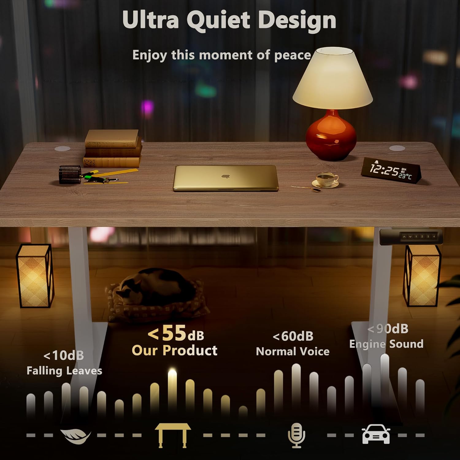 - 【Durable & Quiet Motor】– Designed for peak performance, our electric standing desk boasts a high-quality motor that delivers smooth, quiet height adjustments from 27.9" to 46.8", while the advanced anti-collision system ensures safe operation without interruptions