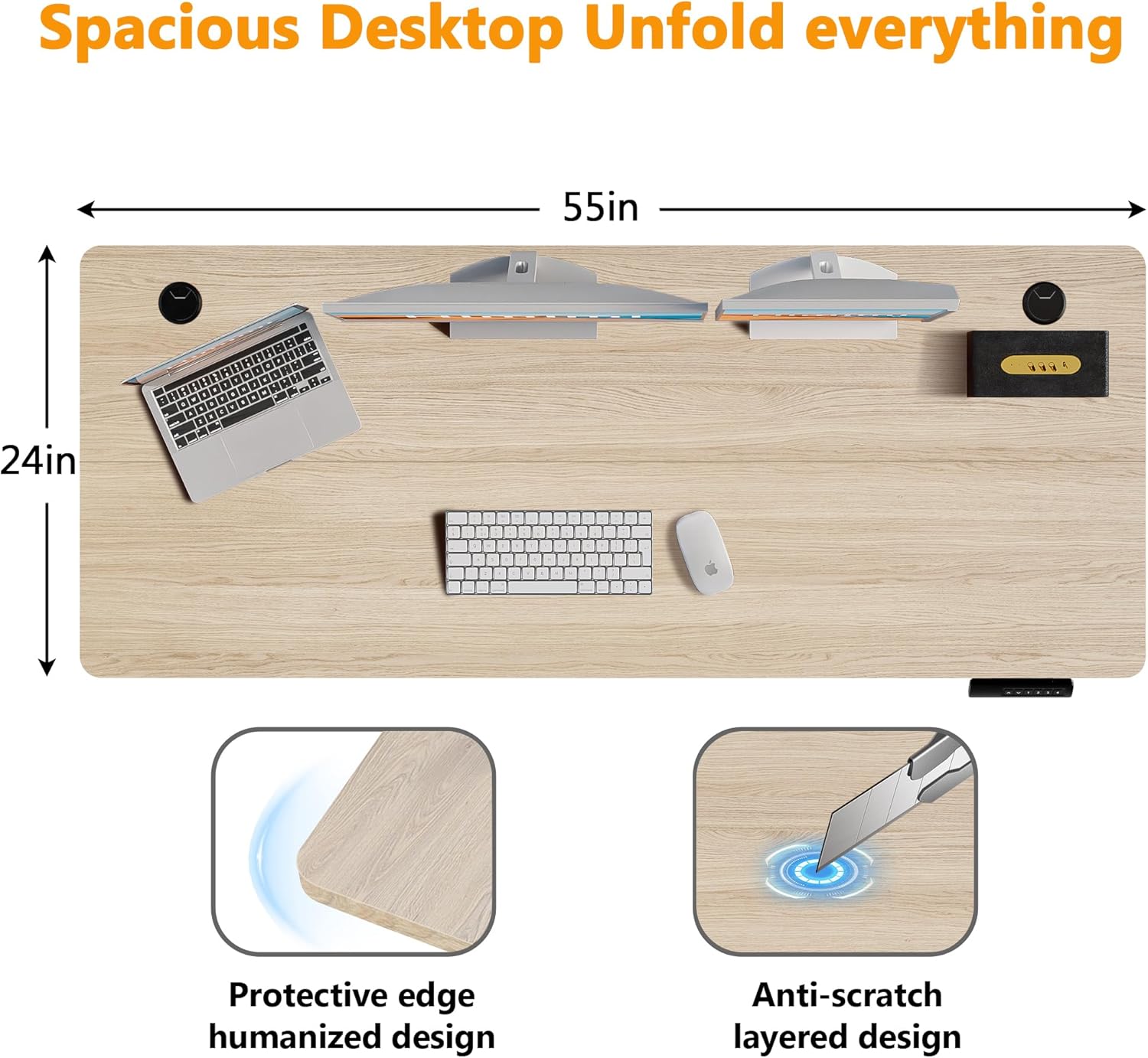- 【Extra Large Workstation】– Boost productivity with our 55" L x 24" W desktop, providing ample space for monitors, keyboards, and office essentials. Designed for professionals and gamers, this clutter-free desk ensures a smooth workflow for work, design, or gaming. Enjoy functionality and freedom in one versatile workspace